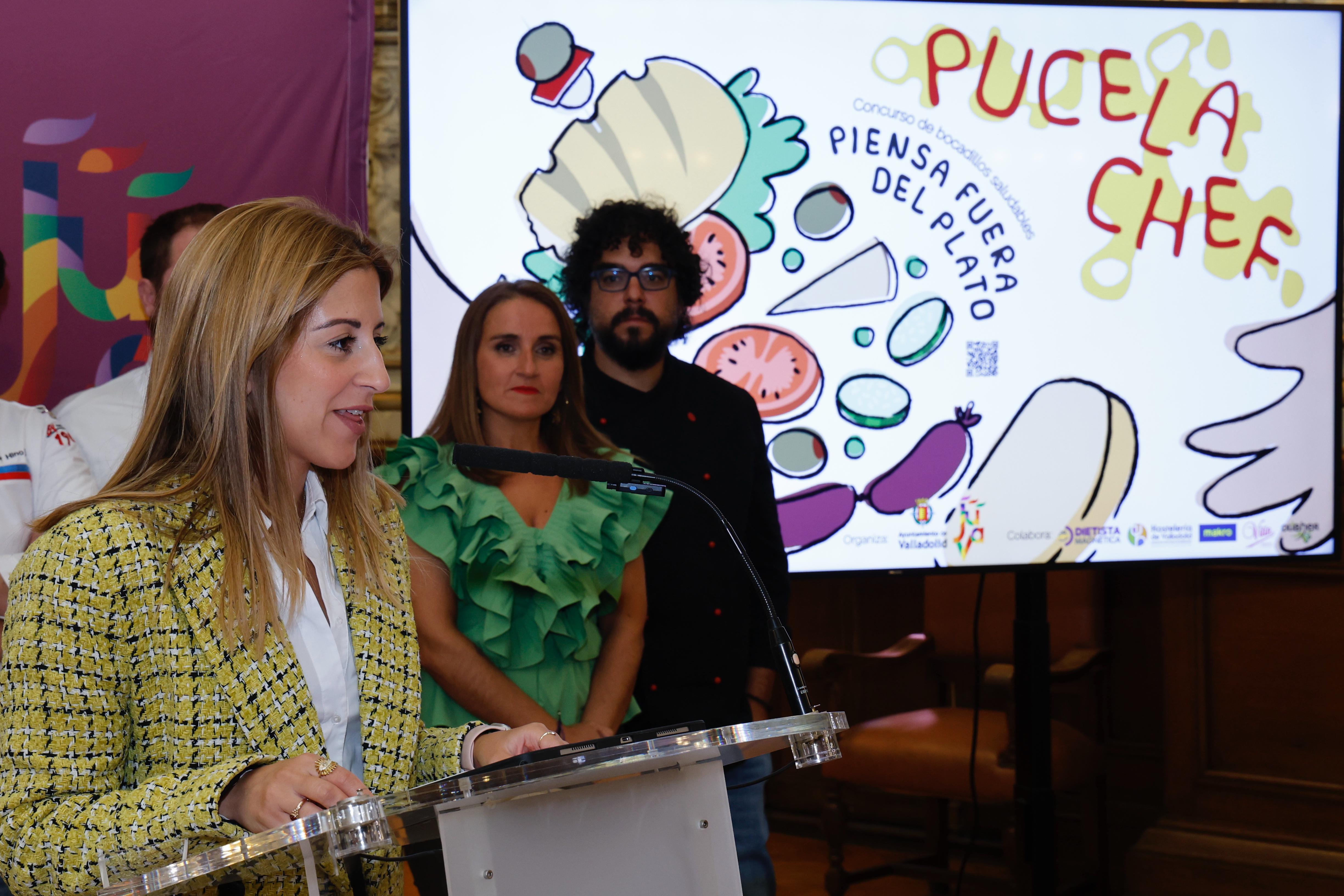 La concejala de Juventud, Carolina del Bosque, ha presentado hoy el proyecto ‘Pucela Chef’ que busca promover hábitos alimenticios saludables, especialmente entre los jóvenes. El evento está planteado como un concurso de bocadillos saludables donde los grandes chefs de la ciudad ayudarán a los vallisoletanos a preparar el mejor bocadillo.