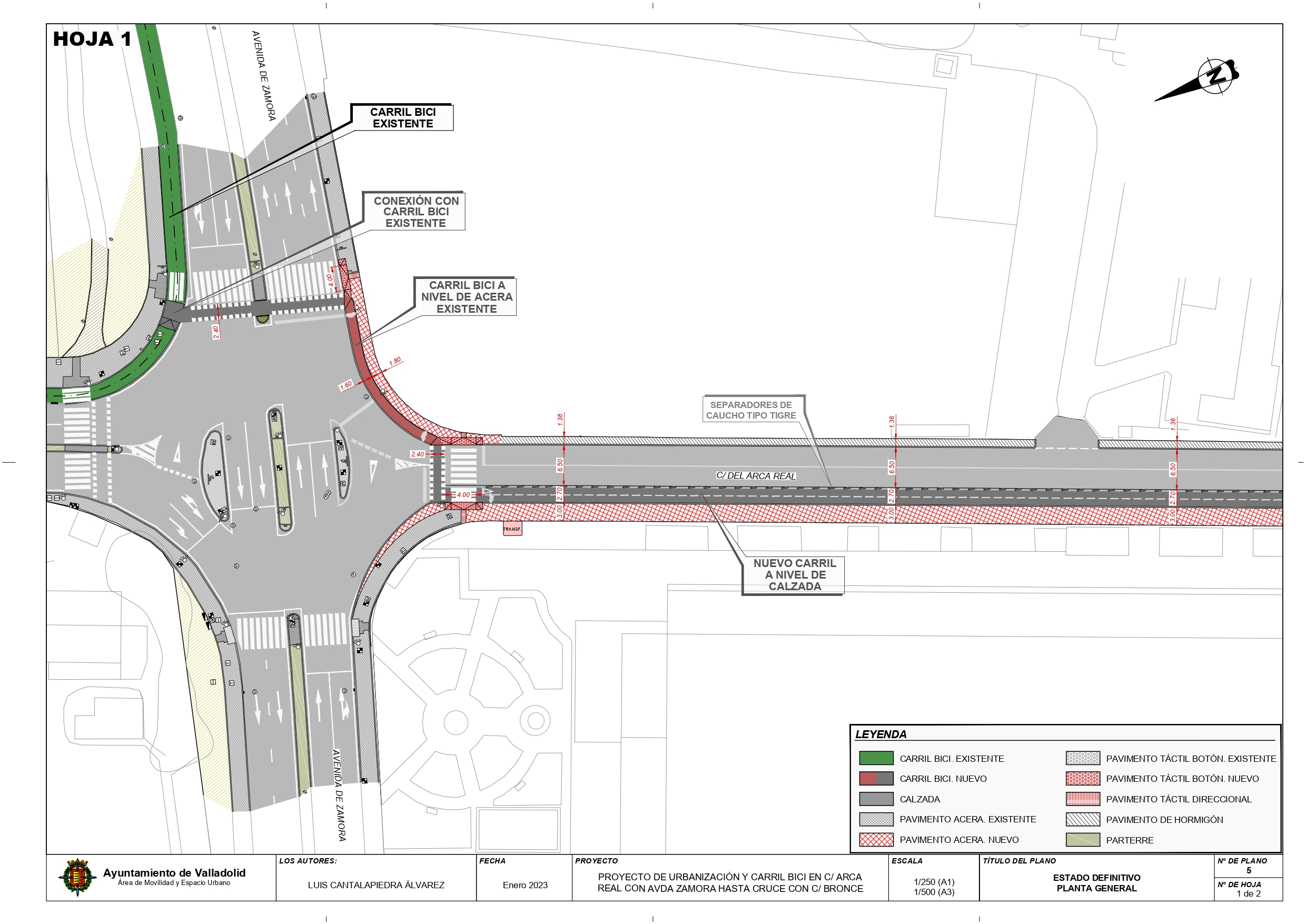 El carril bici, con doble sentido de circulación, tendrá una anchura media de 2,40 metros con acabado en aglomerado asfáltico; en tanto que se creará una acera peatonal en uno de los márgenes con una anchura mínima de 3 metros, que se rematará con baldosa de hormigón siguiendo la trama existente en la Avenida de Zamora.