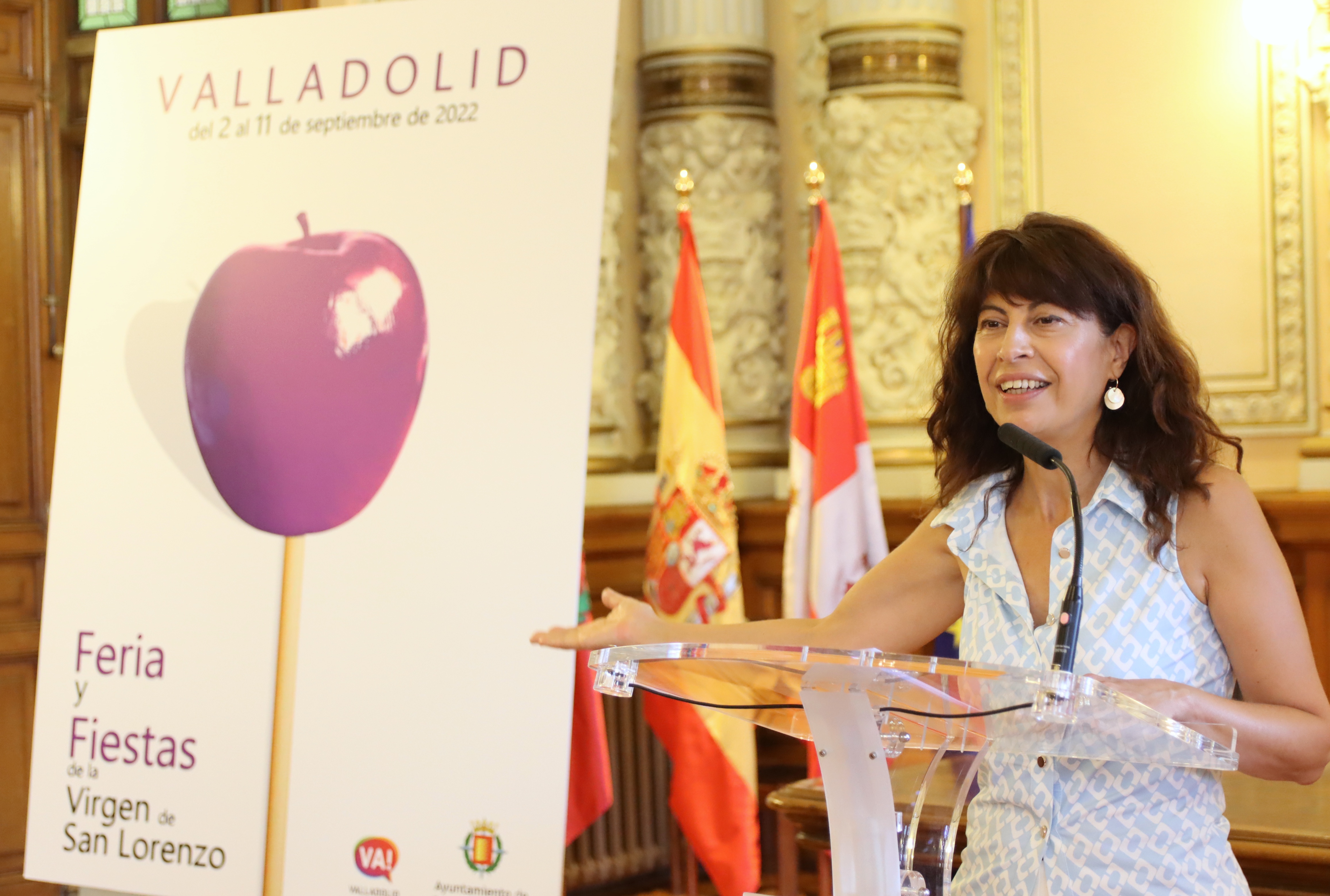 En el diseño, elegido de entre los 82 presentados al concurso convocado por la Fundación Municipal de Cultura del Ayuntamiento de Valladolid para elegir la imagen oficial de estas fiestas, destaca como motivo central una manzana de caramelo, elemento característico de las ferias y fiestas, de un color viola "muy pucelano". "La idea, según me ha explicado el autor, era representar las fiestas como algo a lo que apeteciera hincar el diente" ha comentado el alcalde, quien ha transmitido a todos vallisoletanos el deseo lanzado por el diseñador vitoriano: "espero que tengáis unas fiestas apetitosas, divertidas y muy dulces".