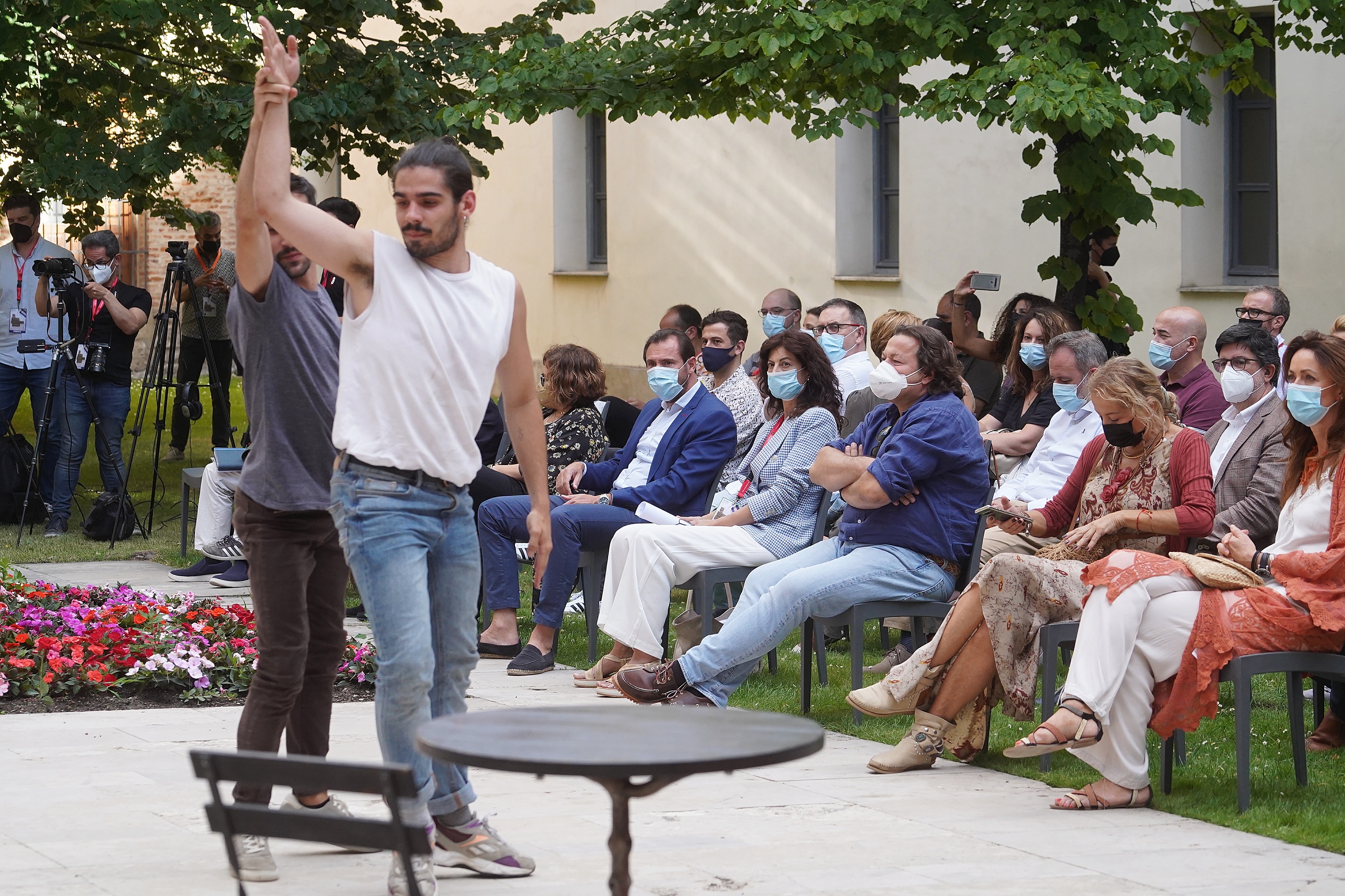 En el acto inaugural, Ana Redondo ha sido la encargada de presentar al jurado del festival, tras lo cual ha recordado a la figura de Eduardo Cuadrado, el escultor y artista visual vallisoletano, fallecido el pasado mes de enero y muy vinculado con el TAC, no solo por se autor de las estatuillas que se entregan a las compañías premiadas cada año, sino también por sus participaciones como artista, la última en 2018.