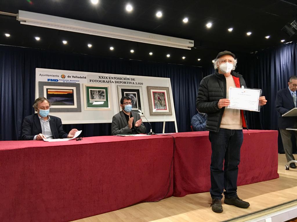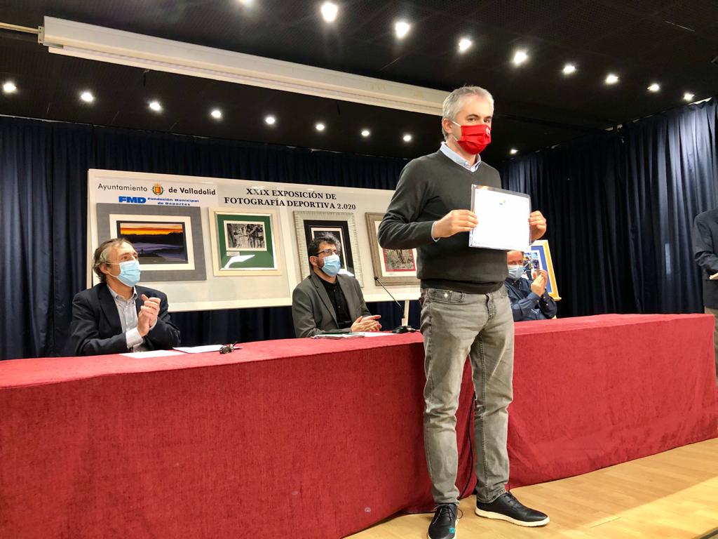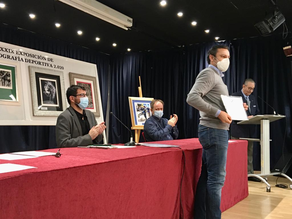 El concejal de Deportes y Participación Ciudadana, Alberto Bustos, ha presidido la entrega de premios del XXIX Concurso de Fotografía Deportiva de la Fundación Municipal de Deportes y VI Concurso de Relatos Cortos 2020 de la Asociación de la Prensa Deportiva, acompañado por el gerente de la Fundación Municipal de Deportes, Borja Lara, y por el presidente de la Asociación de la Prensa Deportiva, Íñigo Torres, en un acto celebrado hoy en el Centro Cívico Zona Sur conducido por el periodista deportivo Marco Antonio Méndez.