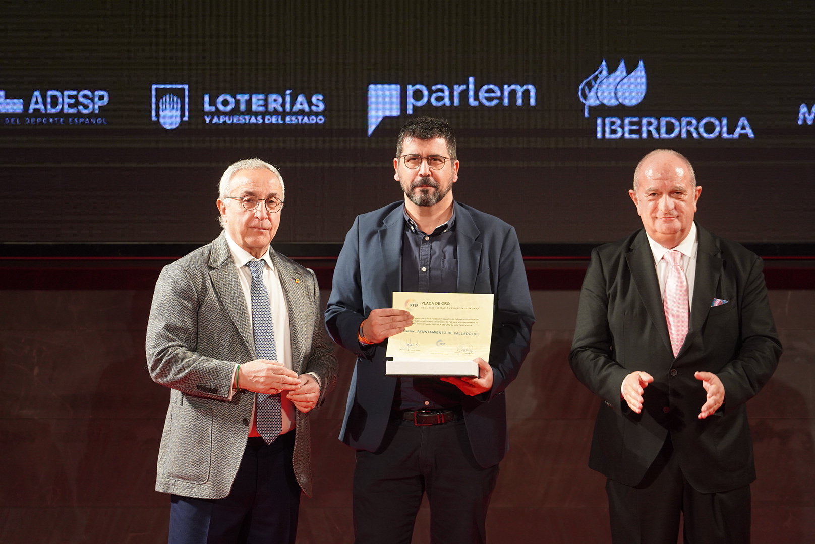 El concejal de Participación Ciudadana y Deportes, Alberto Bustos, ha asistido a la gala para recoger la distinción, la placa de oro, que la Real Federación Española de Patinaje (RFEP) ha otorgado al Ayuntamiento de Valladolid por su fuerte apuesta por el patinaje, el gran número de aficionados y el éxito de eventos que han convertido a Valladolid en la capital del patinaje artístico y el hockey en línea español.