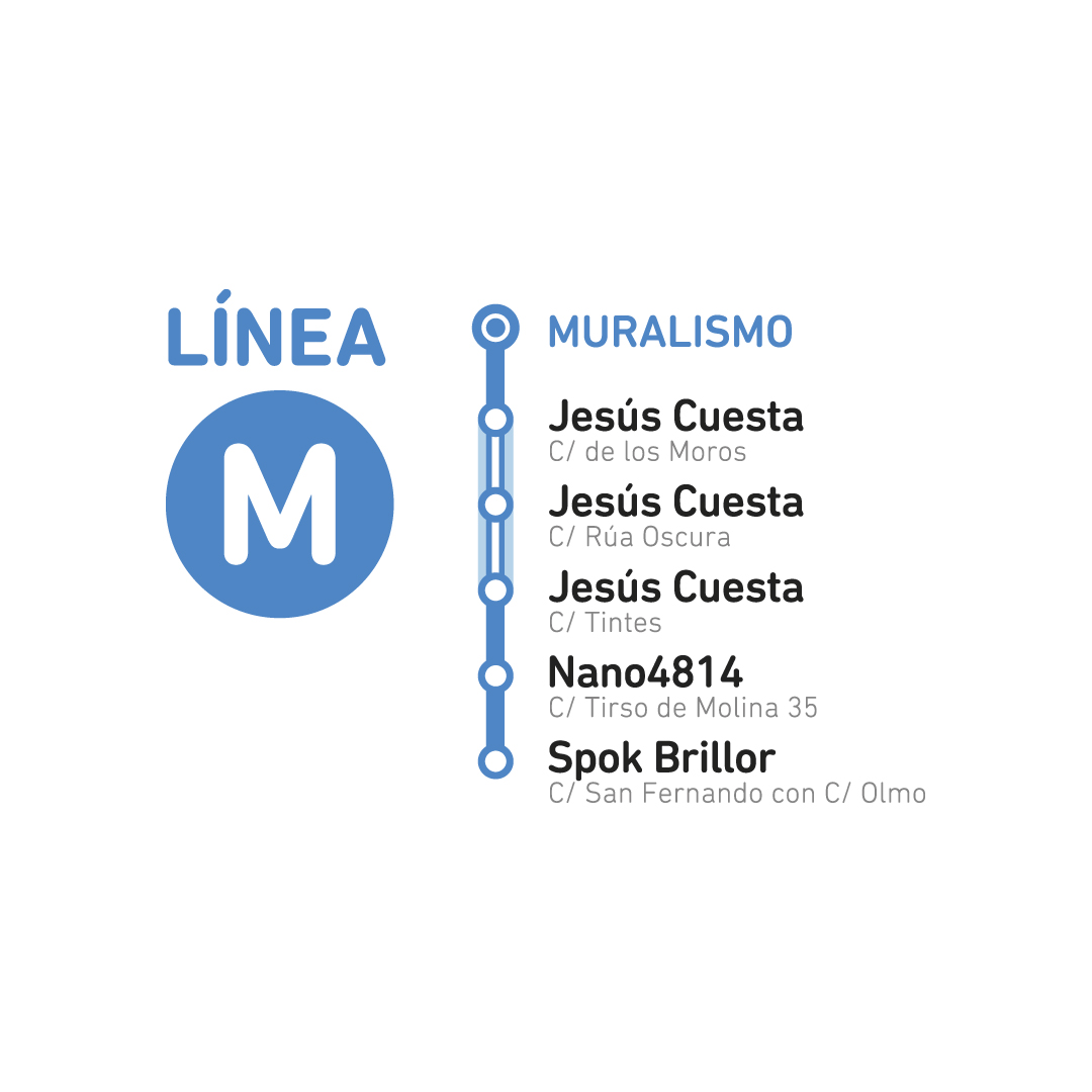Pasajera nos observa desde arriba camuflada en los soportales donde las personas pasean y la vida fluye. Este collage a modo de alegoría en una falsa cúpula urbana, nos habla de lo efímero, del implacable paso del tiempo, de la perdida de la juventud, del olvido. Esta presencia serena pero un poco triste se mezcla con un jarrón de flores que a su vez representa de nuevo la belleza arrebatada y condenada. Un laberinto geométrico y simbólico que nos quiere recordar con su presencia que hay que vivir el momento.