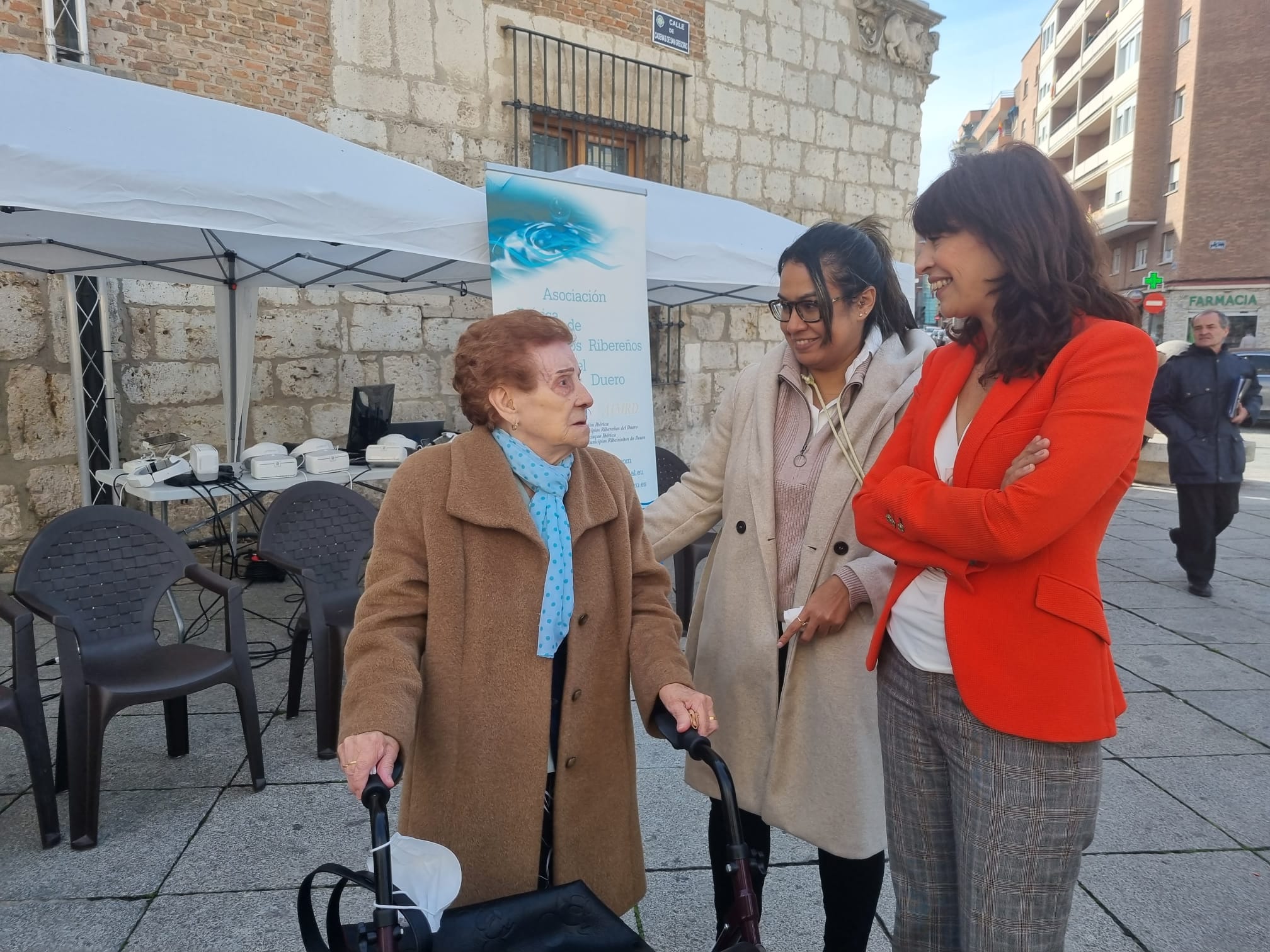 La experiencia piloto se ha realizado hoy en la Plaza de San Pablo donde los mayores, agrupados en grupos de cinco y en sesiones de 30 minutos, han podido ver la fachada de la iglesia a través de unas gafas de FPV conectadas a un dron. Durante este tiempo, el personal de Ecogeo, responsables de los vuelos sin tripulación, han pilotado por diferentes espacios de la plaza; mientras que los mayores han vestido de unos brazaletes inalámbricos con los que se han medido sus niveles de atención y emoción.