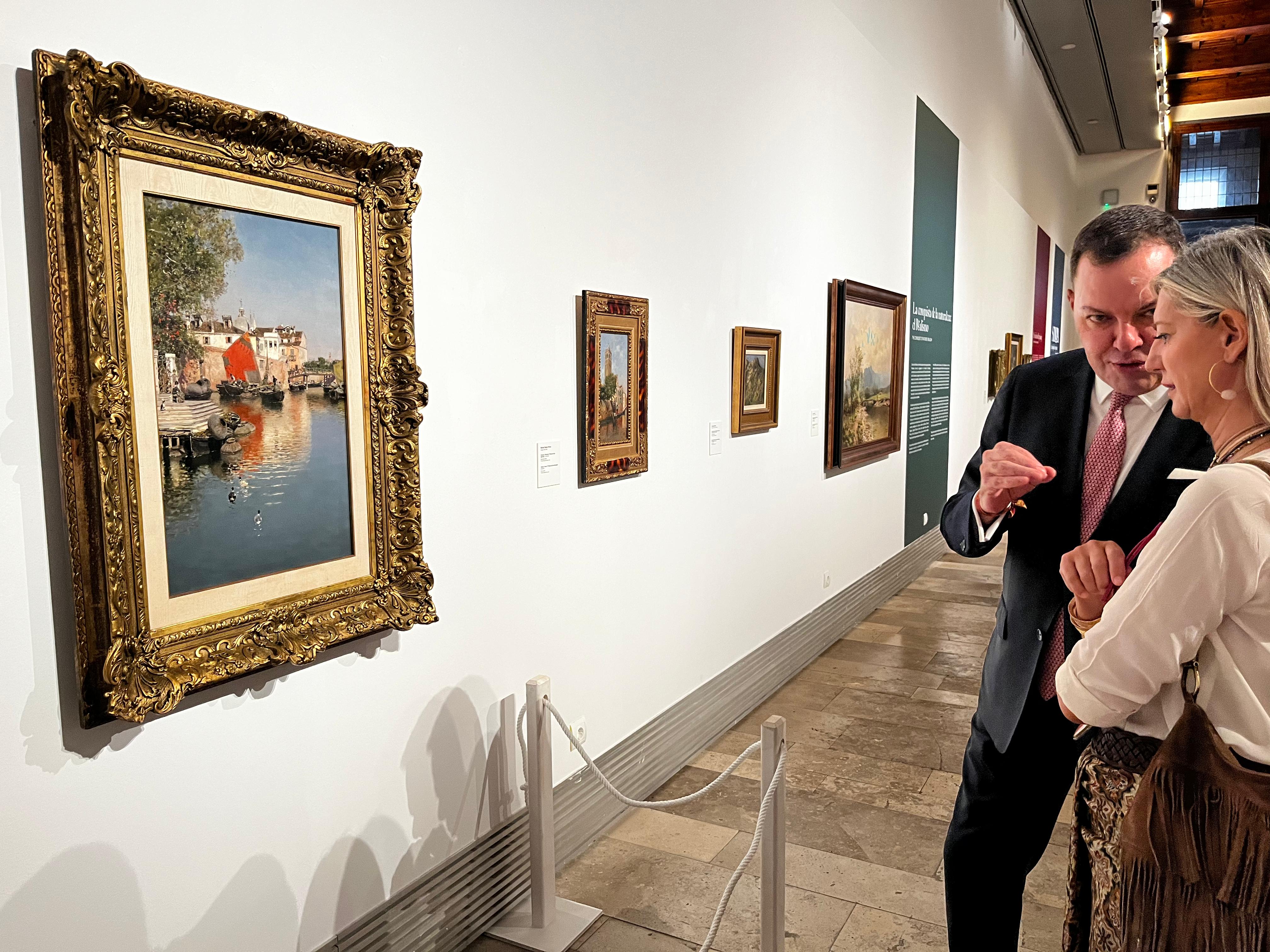 En 2023 se cumplen cien años de la muerte de Joaquín Sorolla, el pintor español más importante del siglo XIX y uno de los grandes representantes de la pintura en plein air (al aire libre). La muestra traspasa los dos géneros más conocidos de Sorolla, el retrato y las escenas costumbristas, para presentar también su faceta como paisajista, que lo convirtió en uno de los protagonistas de la revolucionaria pintura al aire libre. Para ello, se exponen nueve óleos originales: Puerto de Pasajes, Paisaje, Playa, El bosque, Merienda en el campo, El doctor Simarro pescando en Jávea, Estudio de una monja, Retrato de la Sra. Traumann y Retrato de niña.