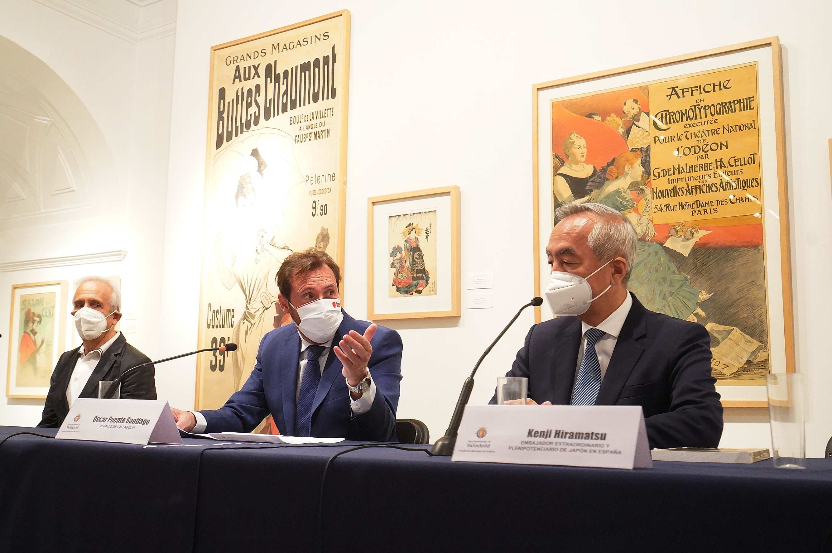 Óscar Puente ha dado la bienvenida al embajador y ha agradecido su visita a Valladolid con motivo de esta excepcional exposición que: "Hasta hace pocas fechas esta Sala Municipal de Exposiciones estaba ocupada por una gran muestra dedicada a la vida y a la obra de uno de escritores más ilustres que han dado las letras españolas, Miguel Delibes. A partir de hoy la sucede otra que, a la vista está, raya igualmente a gran altura, lo cual es un síntoma de la vitalidad del panorama cultural de nuestra ciudad. No es casual la fecha elegida para esta presentación de esta exposición que lleva por título "La estampa japonesa y la Belle Époque". Puesto que hoy, Día Internacional de los Museos, celebramos el papel que tienen estos centros para el intercambio cultural, el enriquecimiento de las culturas y el desarrollo de la comprensión entre los pueblos. Y es, precisamente, en este clima de entendimiento, comprensión y respeto tan necesario en el que podemos enmarcar esta muestra".