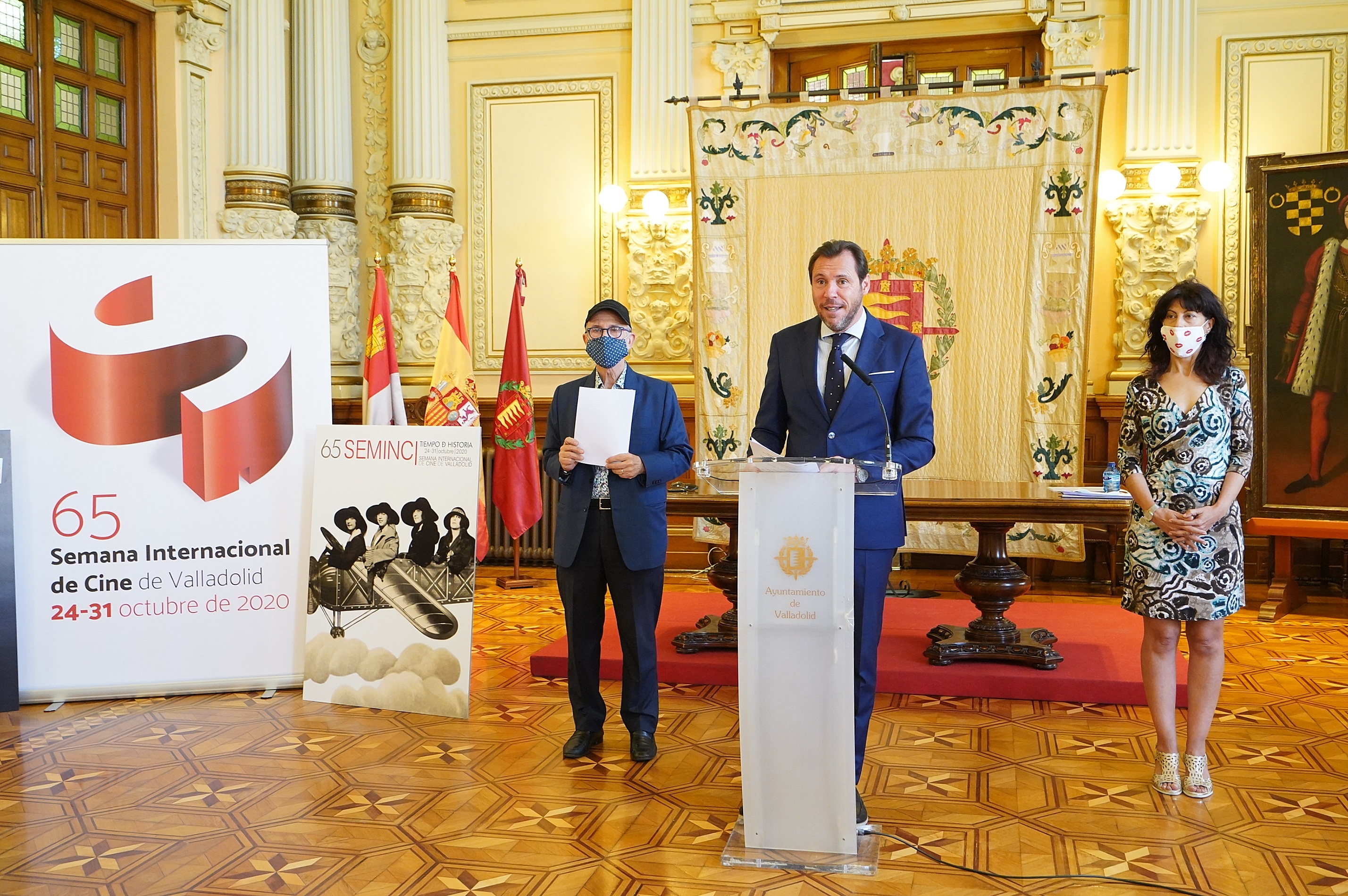 El alcalde, Óscar Puente; la concejala de Cultura y Turismo, Ana Redondo, y el director de la SEMINCI, Javier Angulo, han presentado en el Ayuntamiento los carteles de la próxima edición del Festival Internacional de Cine de Valladolid, al tiempo que se ha desvelado el ciclo conmemorativo de los 65 años del Free Cinema inglés.