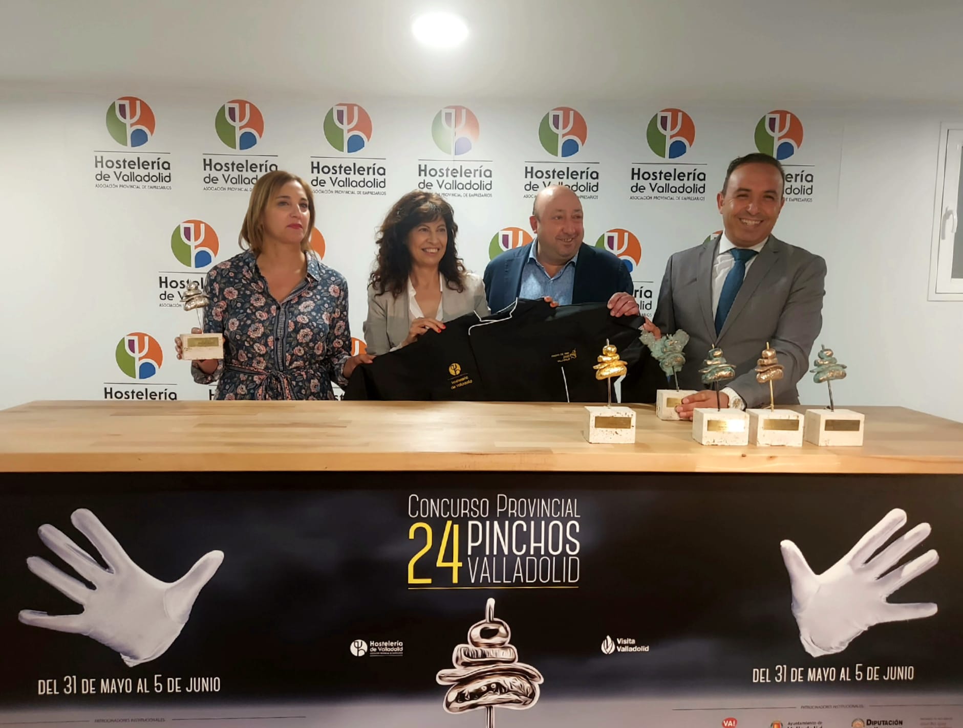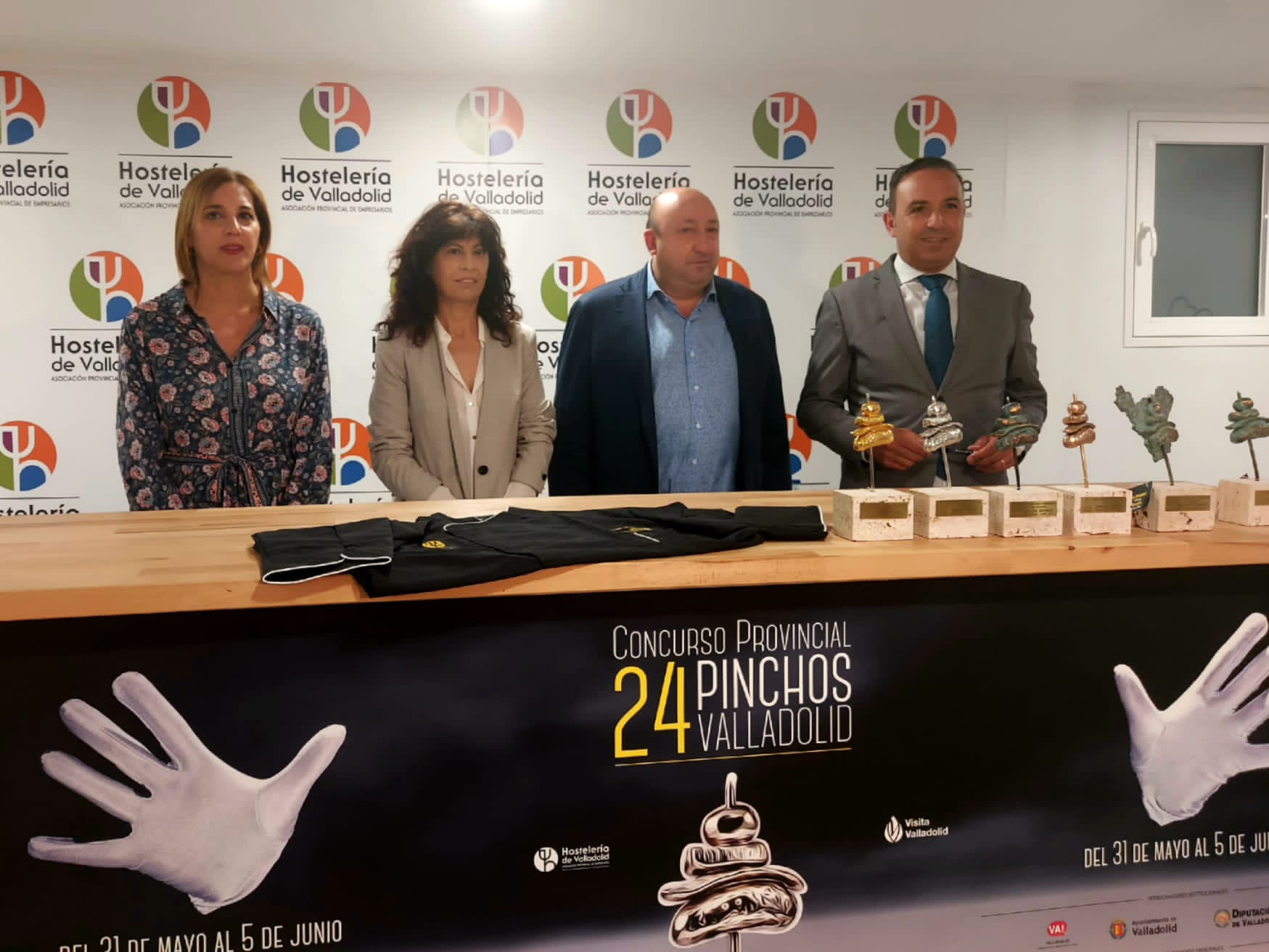 La concejala de Cultura y Turismo, Ana Redondo; el presidente de la Asociación de Empresarios de Hostelería de Valladolid, Jaime Fernández; el vicepresidente de la Diputación, Víctor Alonso; y la diputada de Promoción Agroalimentaria y Consumo, Inmaculada Toledano; han presentado la XXIV edición del Concurso Provincial de Pinchos que se celebrará entre el 31 de mayo y el 5 de junio. La final tendrá lugar el lunes día 6 en la Escuela Internacional de Cocina "Fernando Pérez".