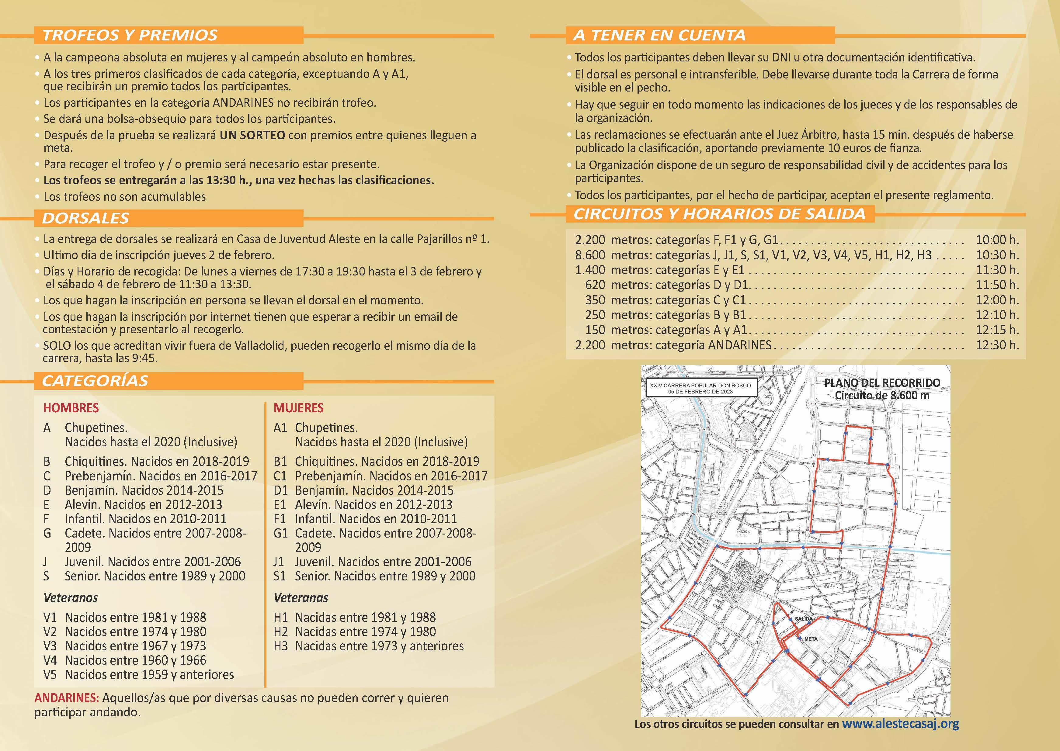 El día de la carrera no se podrán recoger los dorsales, a excepción de aquellos que residan fuera de la ciudad de Valladolid, que podrán hacerlo de 9:00 a 9:45 horas.