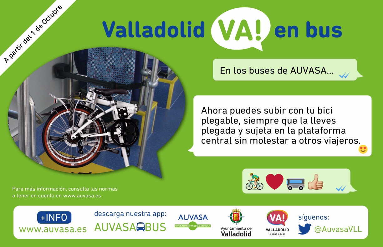 Desde este domingo, 1 de octubre de 2017, AUVASA autorizará el acceso a los autobuses de usuarios portando bicicletas siempre que estas estén plegadas bajo una serie de condiciones. Entre ellas, el concejal de Movilidad y Seguridad, Luis Vélez, hizo hincapié...