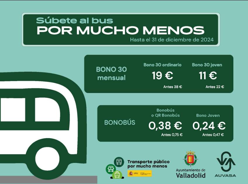 • El Ayuntamiento de Valladolid mantendrá el descuento del 50% en los autobuses urbanos en títulos multiviaje y bonos 30 durante el año 2024