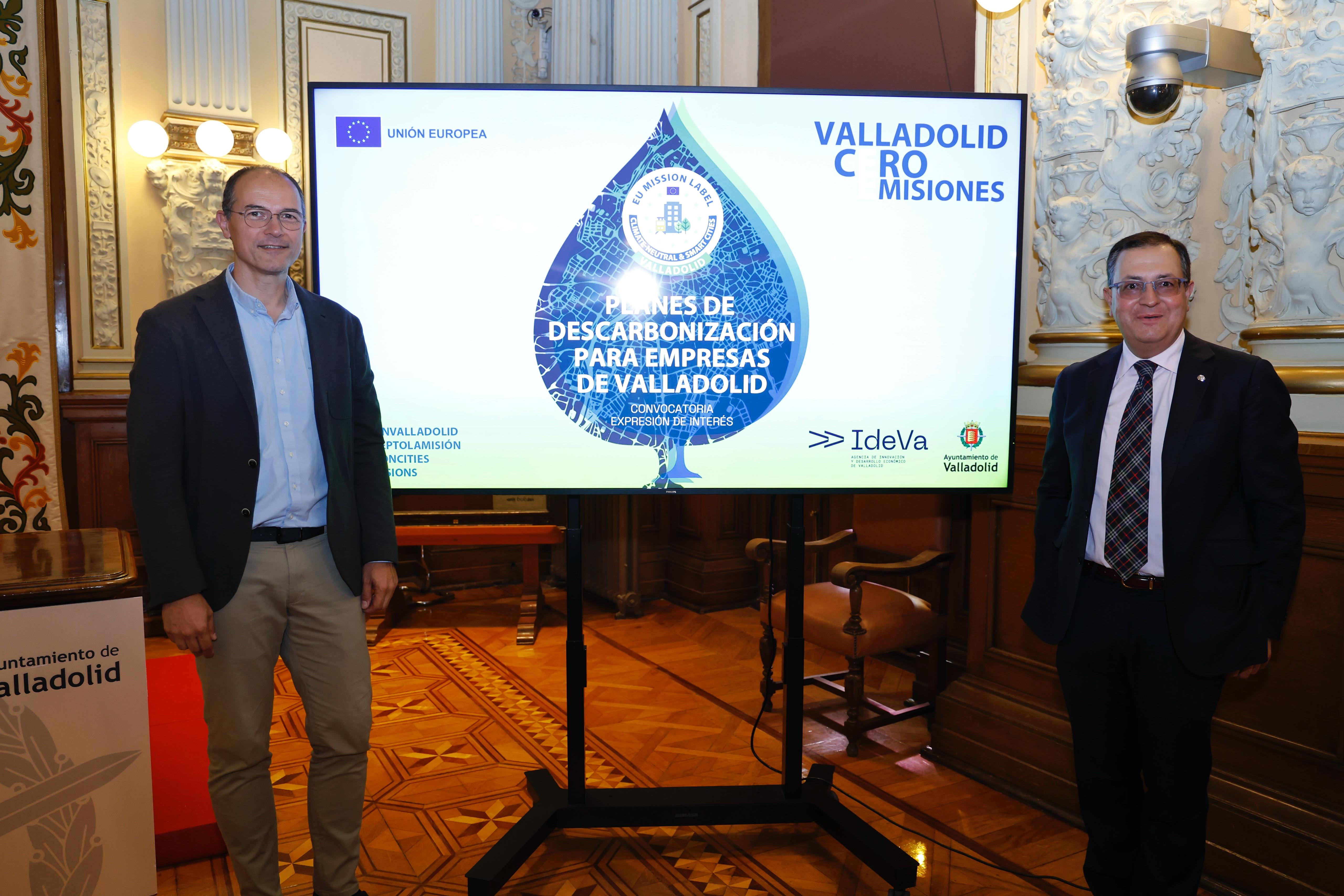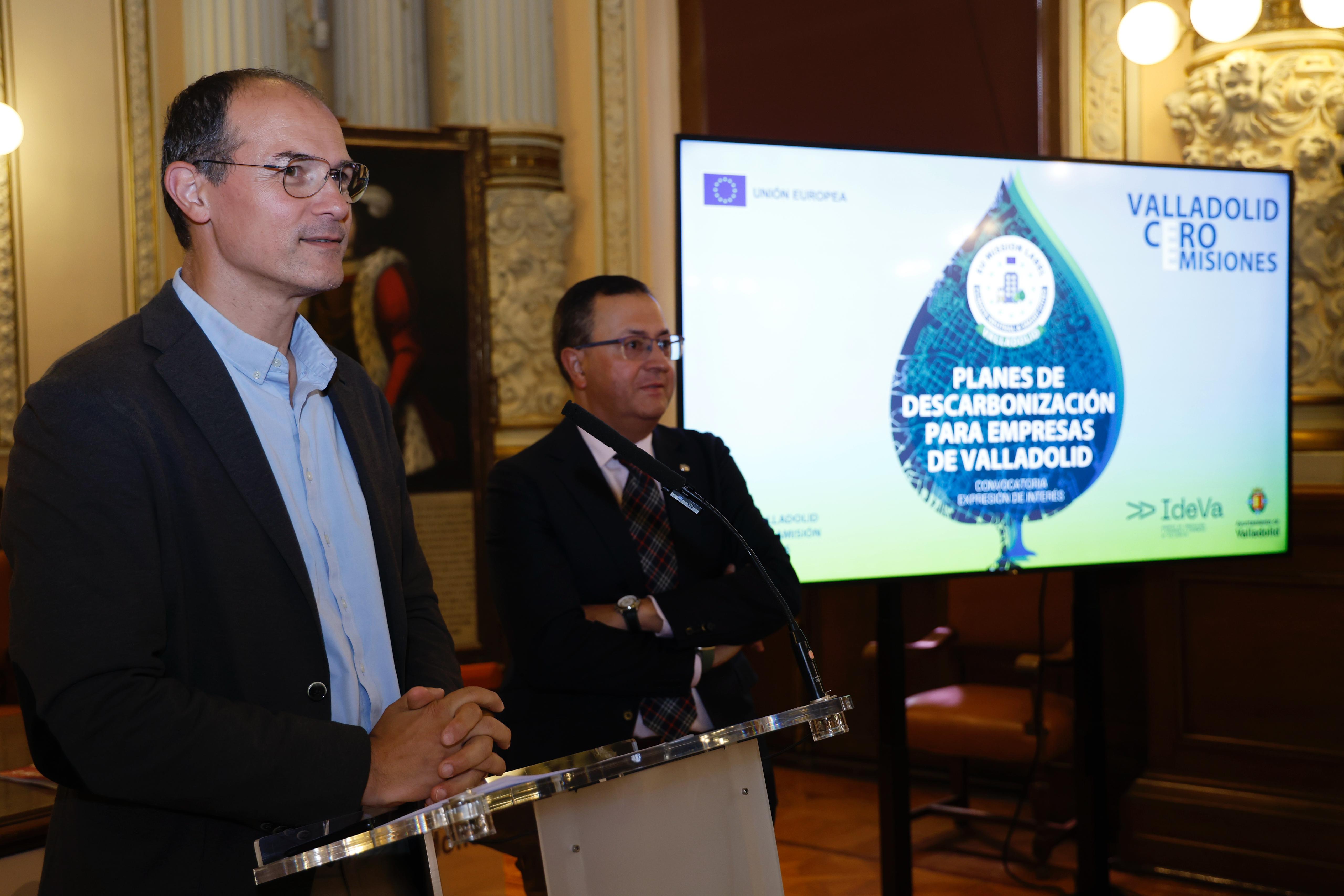 La propuesta ha sido presentada hoy en la Casa Consistorial por el concejal de Medio Ambiente, Alejandro García Pellitero, y el gerente de la Agencia de Innovación y Desarrollo de Valladolid-IdeVa, Fernando Rubio, y está dirigida a las empresas de la ciudad que estén interesadas en reducir sus emisiones de carbono. Las mismas podrán participar en la convocatoria de expresiones de interés ‘Misión Valladolid: Planes de Descarbonización’, que lanzará el Ayuntamiento de Valladolid.