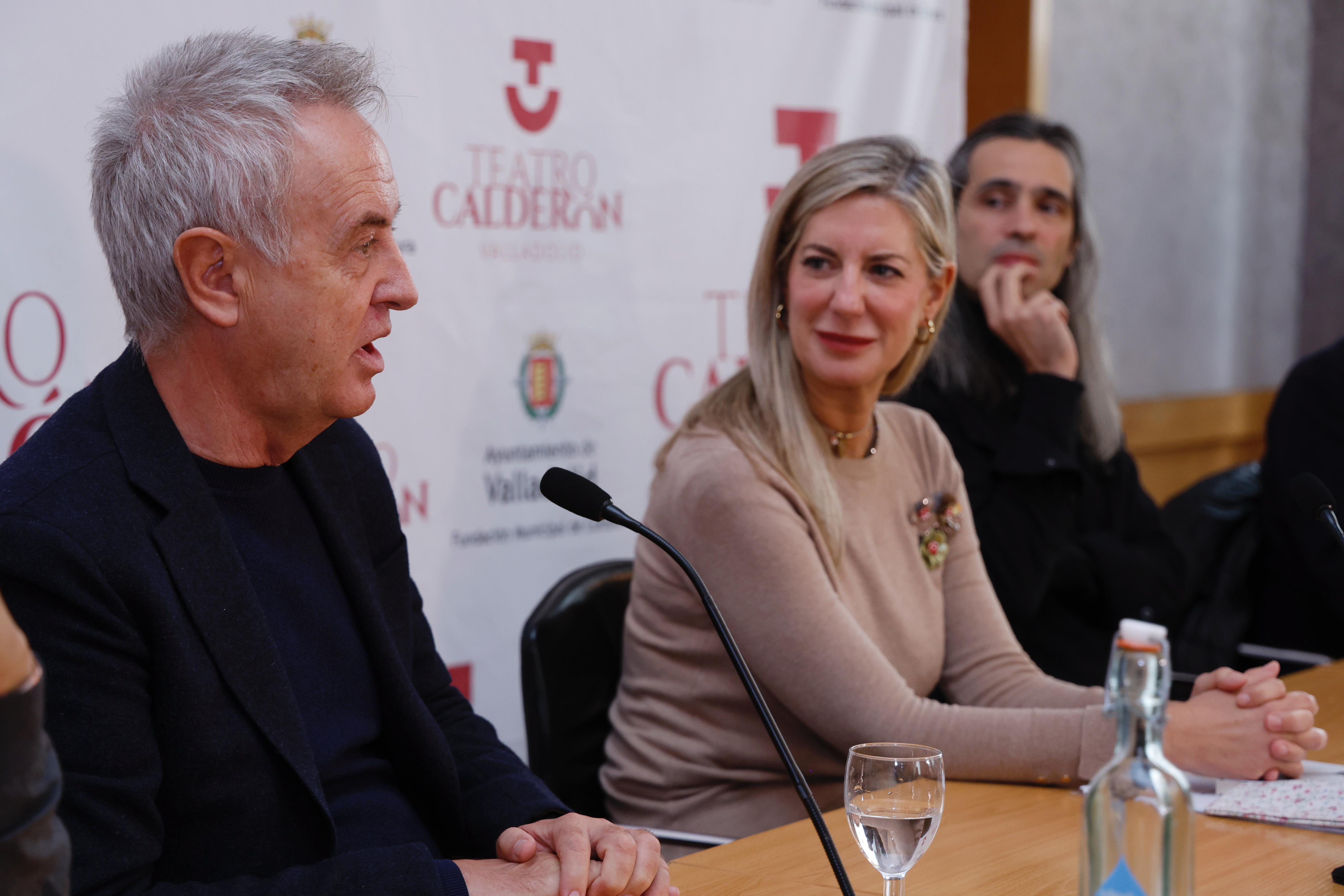 • La concejala de Educación y Cultura, Irene Carvajal, acompañada por el director del Teatro Calderón, Txema Viteri; el actor Carlos Hipólito; el director de escena de ‘Ay Teatro’, Yayo Cáceres, y el dramaturgo de la compañía, Álvaro Tato, ha presentado esta mañana el espectáculo Burro, que se estrenará el próximo día 10 de noviembre en Valladolid, en el Teatro Calderón.