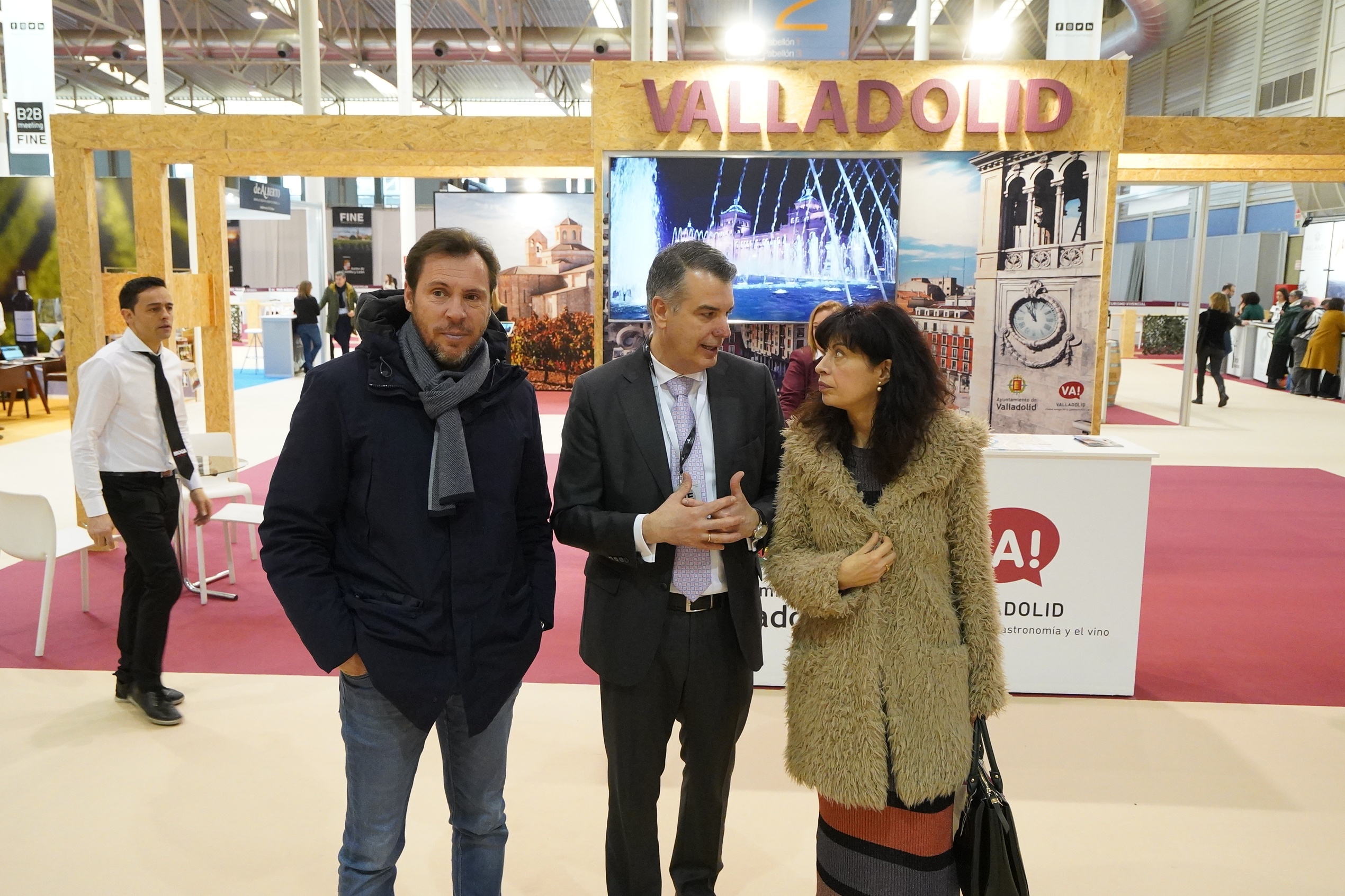 El alcalde de Valladolid, Óscar Puente, y la concejala de Cultura y Turismo, Ana Redondo, han visitado el primer Salón Internacional de Enoturismo FINE que se celebra hoy y mañana en la Feria de Valladolid y en el que se dan cita 93 bodegas y territorios enoturísticos, además de compradores procedentes de una quincena de países.