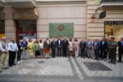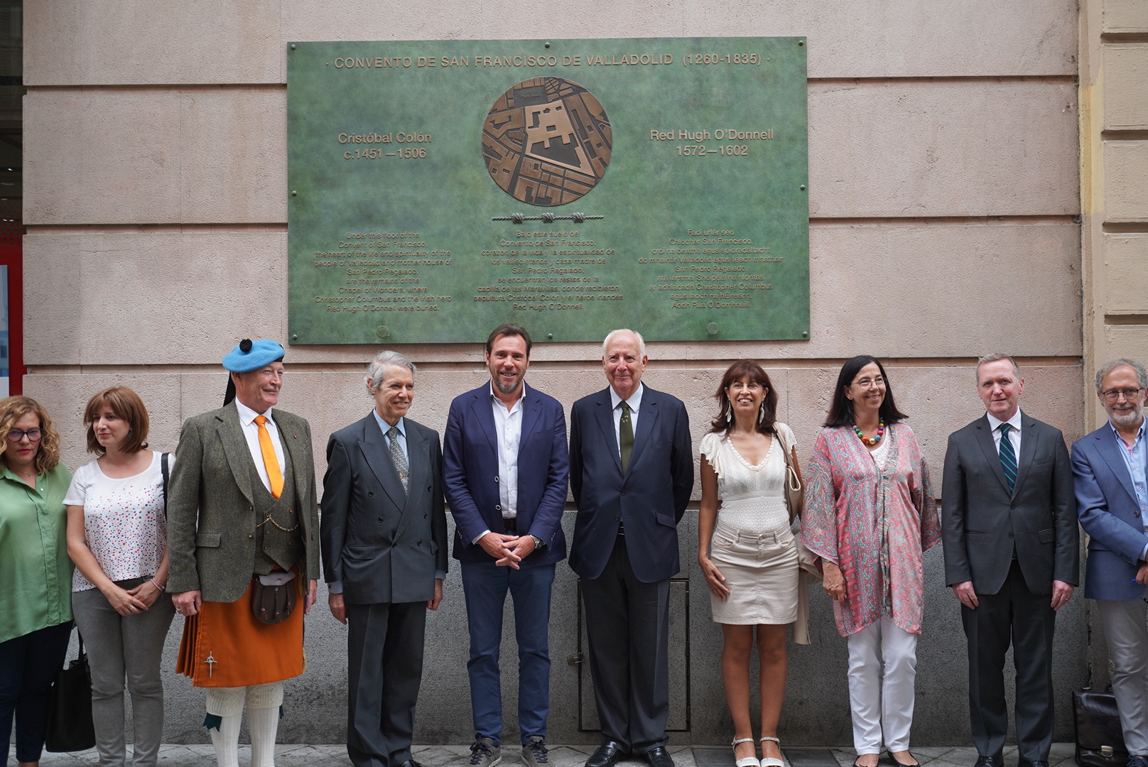 Una placa ubicada en la calle Constitución recuerda a dos personajes históricos que estuvieron enterrados en el mismo lugar, el antiguo convento de San Francisco, en la capilla de Las Maravillas: Cristóbal Colón, en 1505, y Red Hugh O’Donnel, el héroe irlandés que fue enterrado en nuestra ciudad en 1602. Han asistido los dos descendientes vivos de Cristóbal Colón y Hugh O`Donnell y el embajador de Irlanda.