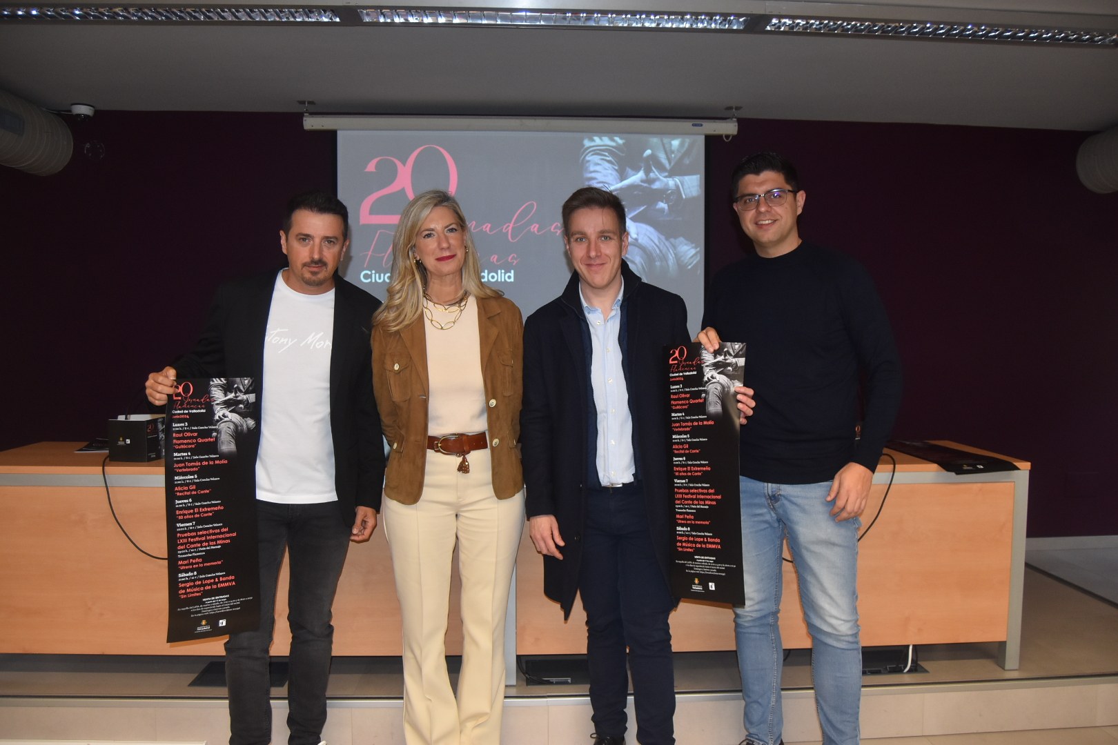 La concejala de Educación y Cultura, Irene Carvajal, ha presentado esta mañana en la Sala Cossío de la Casa Revilla las 20 Jornadas Flamencas ‘Ciudad de Valladolid’, que se celebrarán entre los días 3 y 8 de junio en el Laboratorio de las Artes de Valladolid (LAVA)-Fundación Municipal de Cultura (FMC). Ha estado acompañada por el guitarrista flamenco vallisoletano Raúl Olivar; el director de la Escuela Municipal de Música de Valladolid, Francisco Javier Alonso; el director de la Banda de Música Municipal, Ángel Páez, y Juan Herrero, el jefe de programas de FMC.