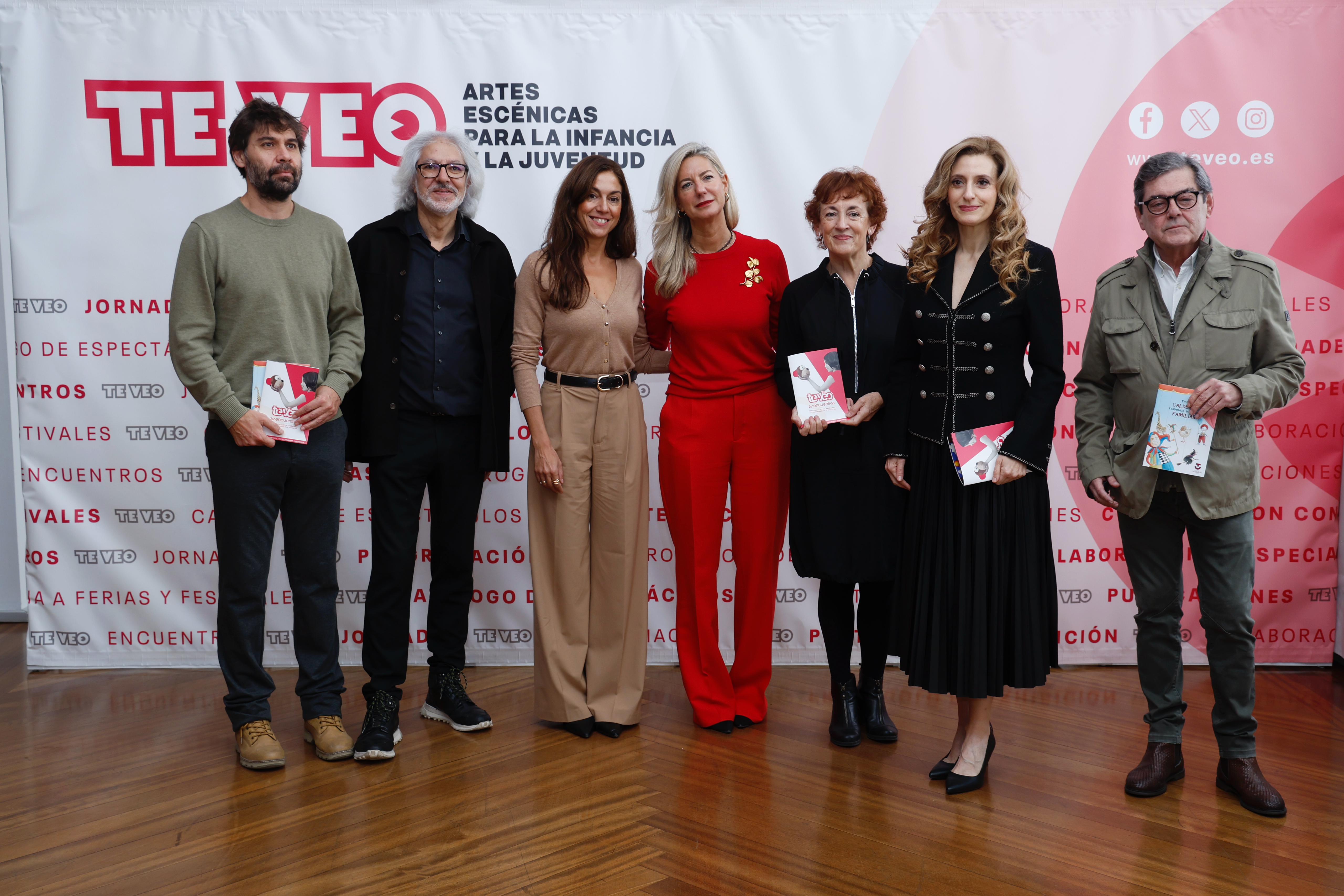 La concejala de Educación y Cultura, Irene Carvajal, el director del Teatro Calderón, José María Viteri, la viceconsejera de Acción Cultural de la Junta de Castilla y León, Mar Sancho, la vicerrectora de Comunicación, Cultura y Deporte de la Universidad de Valladolid, Rebeca San José, y los coordinadores de los Encuentros Te Veo, Ana Gallego y Jacinto Gómez, han presentado esta mañana la programación familiar del Teatro Calderón para esta temporada, y la XXVI edición de los Encuentros Te Veo, que tendrá lugar del 4 al 10 de noviembre.
