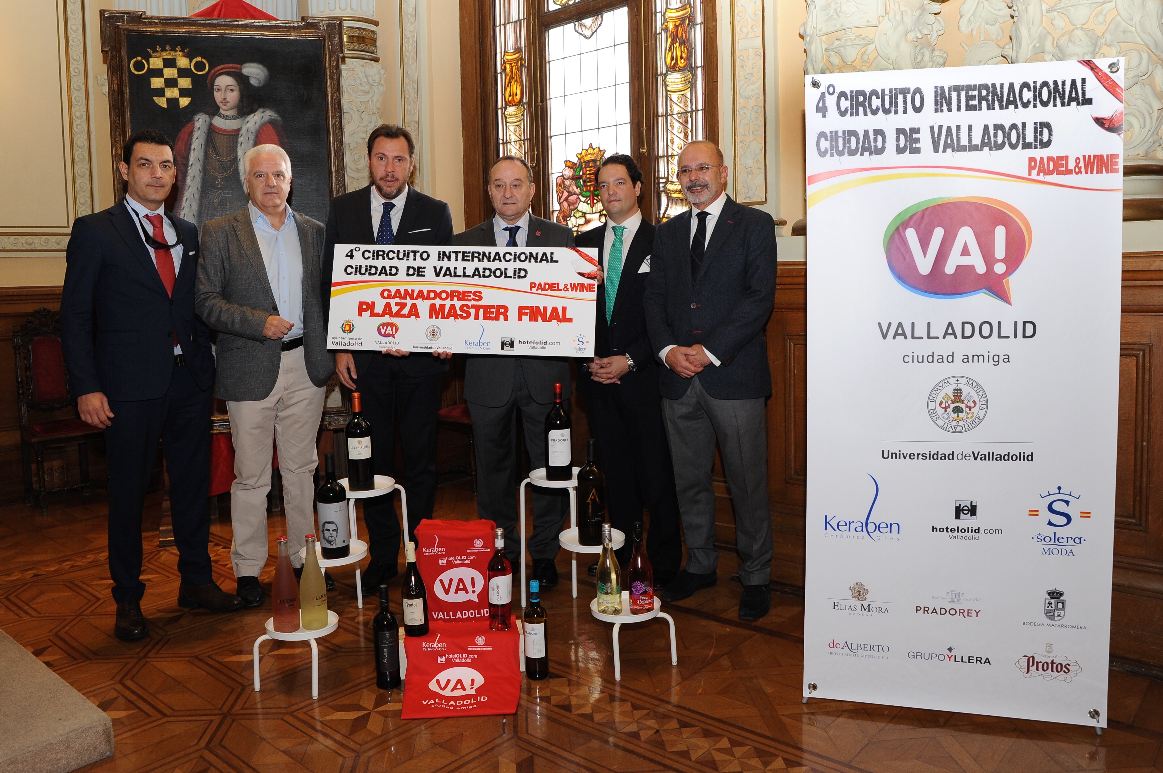 El alcalde de Valladolid, Óscar Puente, y el rector de la Universidad de Valladolid, Daniel Miguel San José, han presentado esta mañana el "IV Circuito Internacional Ciudad de Valladolid Pádel&Wine", que se celebrará en 22 ciudades españolas, una portuguesa y la incorporación de una nueva prueba en la ciudad francesa de Burdeos.