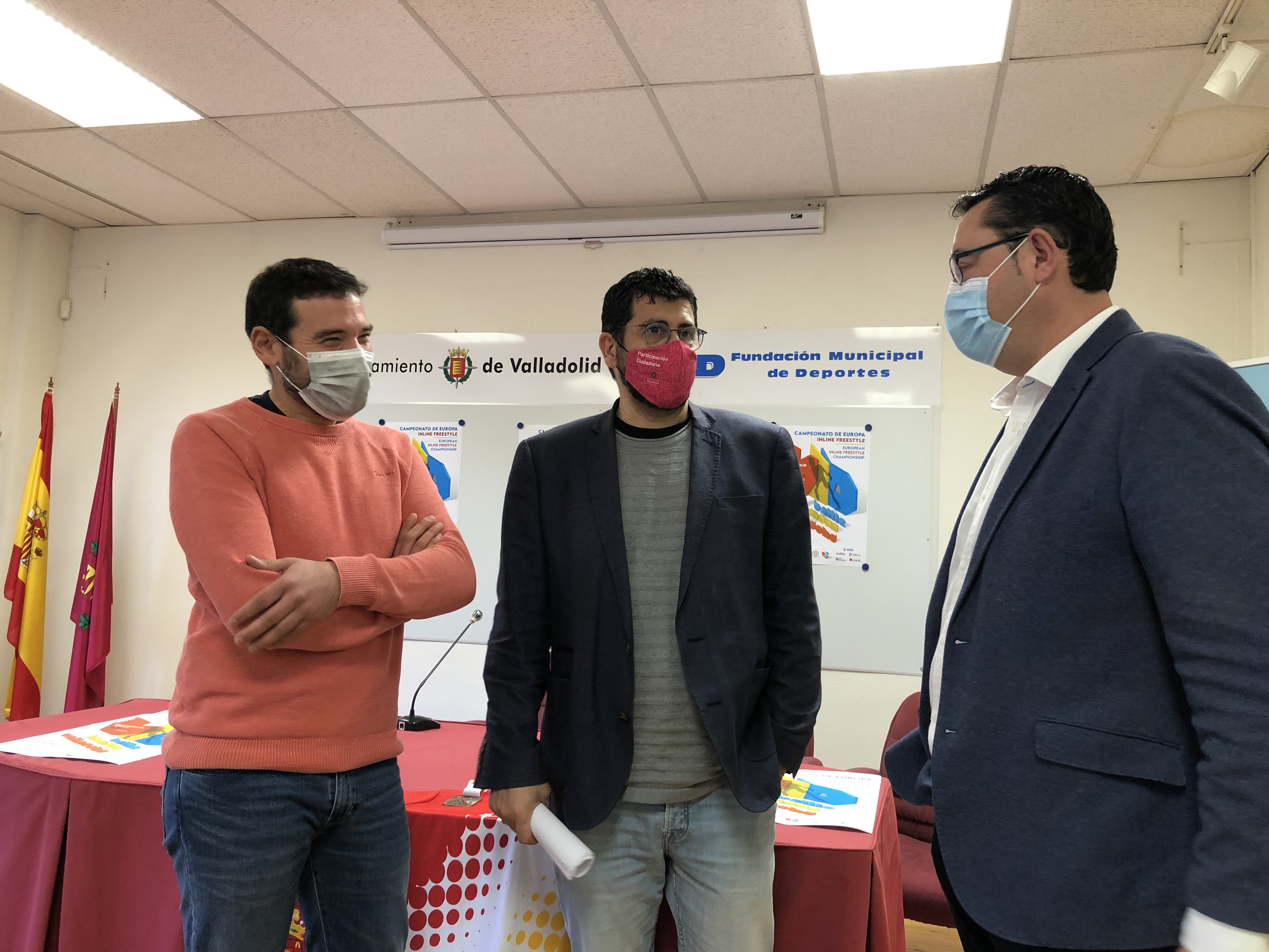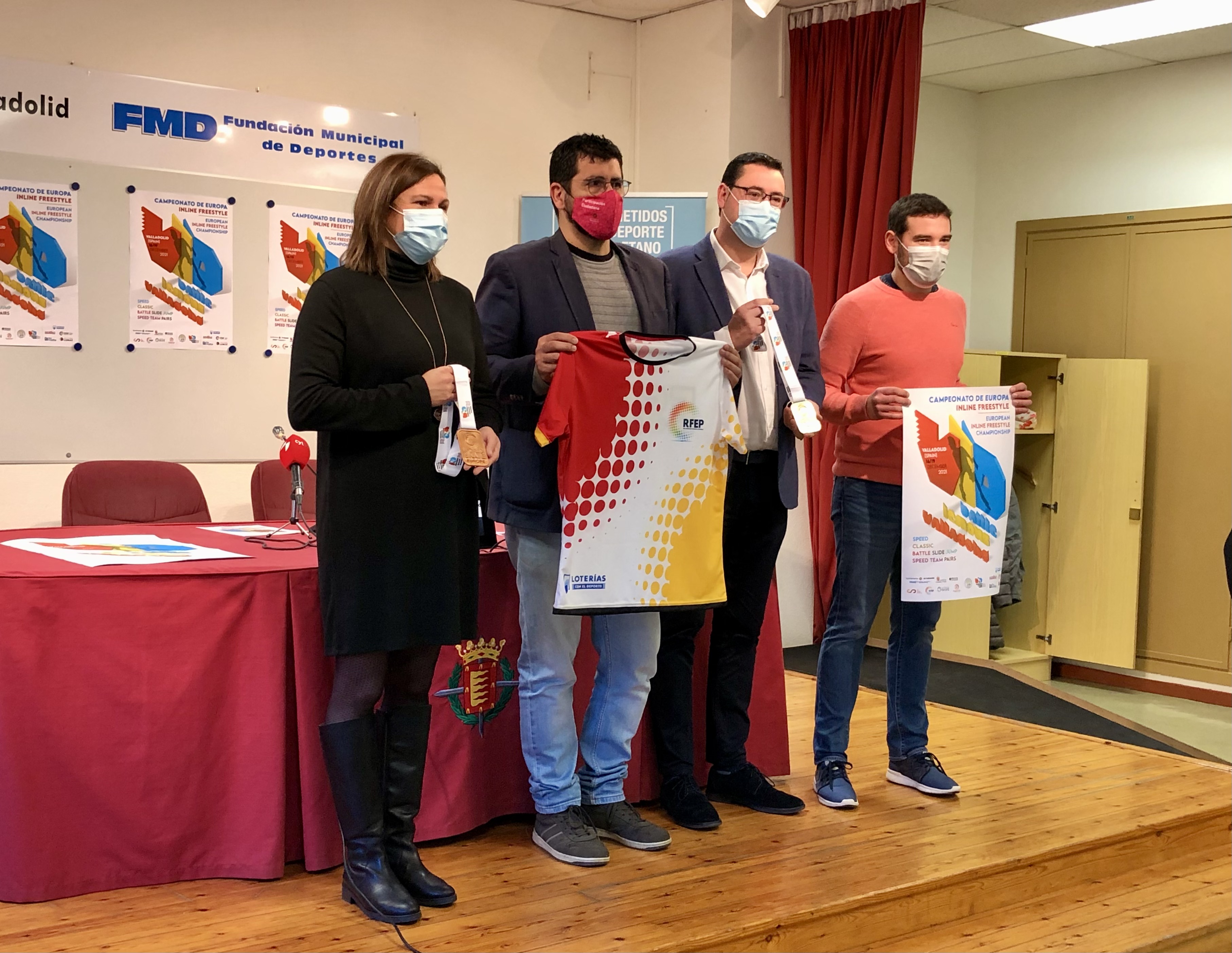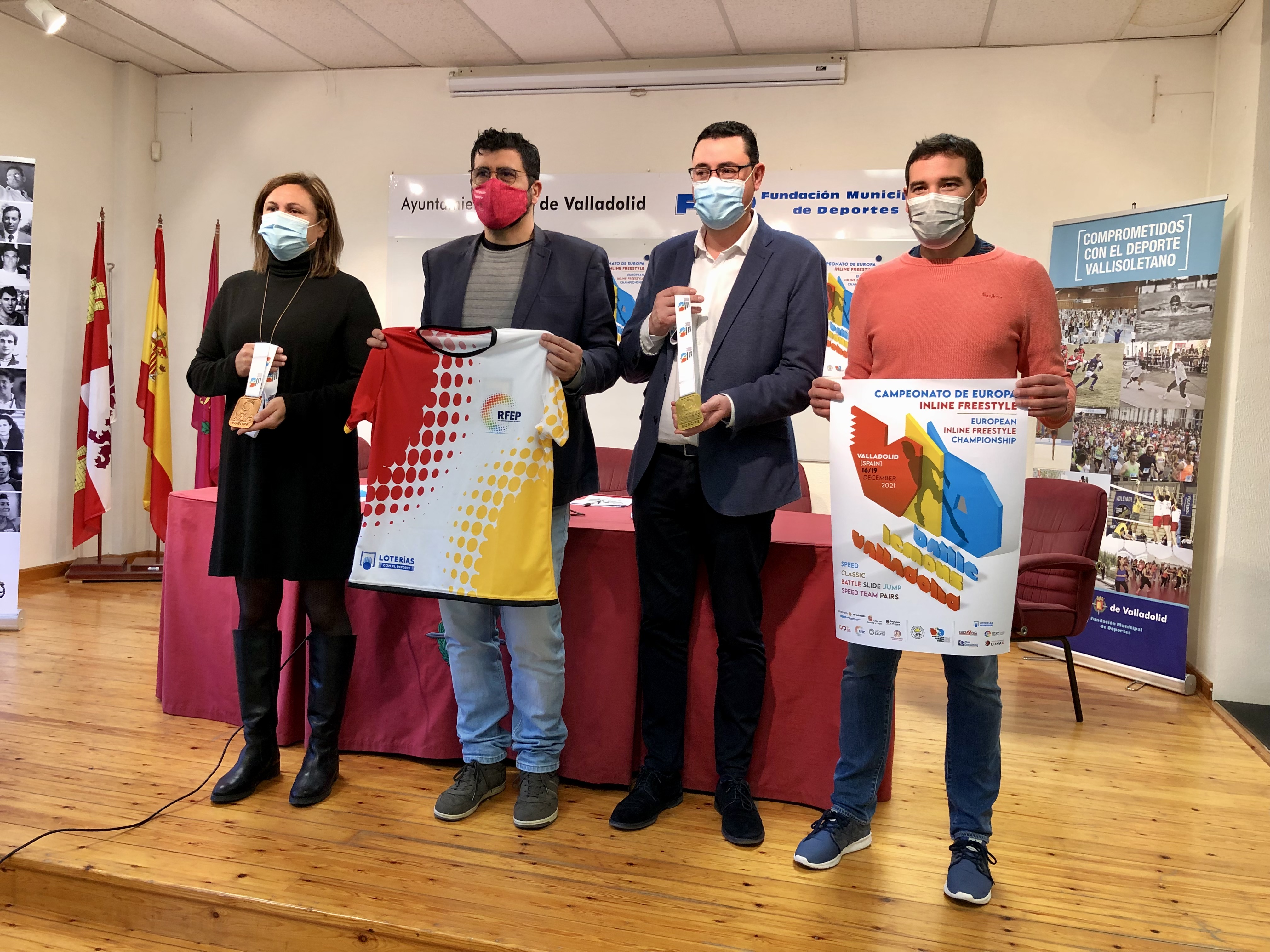 El concejal de Participación Ciudadana y Deportes, Alberto Bustos, ha presentado en la Casa del Deporte el Campeonato de Europa Inline Freestyle de patinaje que se celebrará en Valladolid del 16 al 19 de diciembre en el Pabellón Pilar Fernández Valderrama, acompañado por Javier González, diputado de Juventud y Deportes de la Diputación de Valladolid, Pablo López, presidente Rolling Lemons Valladolid, e Isabel Rodríguez, presidenta de la Federación de Patinaje de Castilla y León.