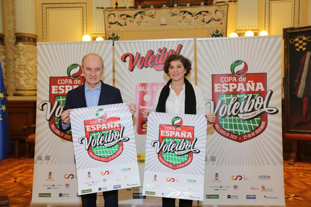 La concejala de Participación Ciudadana y Deportes, Mayte Martínez, y el presidente de la Federación Española de Voleibol, Agustín Martín, han presentado hoy en el Salón de Recepciones del Ayuntamiento la Copa de España de Voleibol junior, cadete y juvenil, que se celebrará en la ciudad entre el 27 y el 30 de diciembre, con récord de participantes, 5.670, y de equipos, 405.