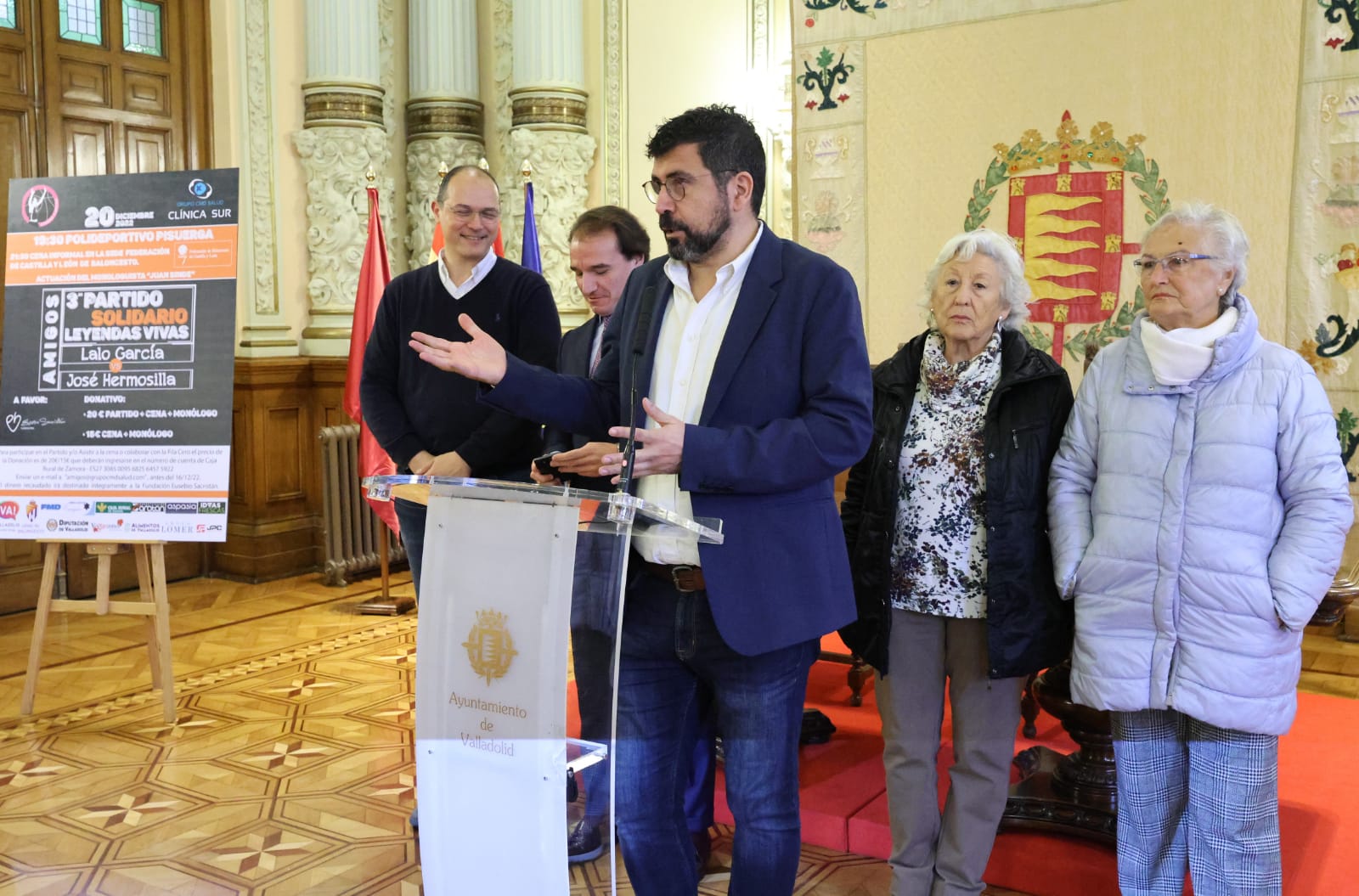 El concejal de Participación Ciudadana y Deportes, Alberto Bustos, ha presentado la tercera edición del partido solidario ‘Lalo vs. Hermosilla’ acompañado por las madres de ambos deportistas; Alejandro García, presidente del Real Valladolid Baloncesto, y Alberto Pereda, gerente de Clínica Sur. "El deporte siempre está a la cabeza de la solidaridad", ha subrayado Alberto Bustos al anunciar este evento en Valladolid. José Ángel Hermosilla también jugó al baloncesto antes de asentarse como jugador de rugby. De hecho, las madres han recordado las coincidencias entre las vidas de Lalo y José.