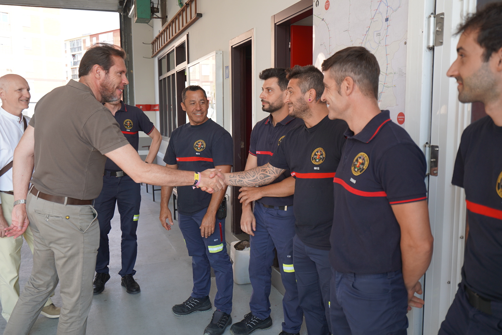 El alcalde, Óscar Puente, ha visitado las instalaciones del parque de Bomberos de Canterac en el Barrio de las Delicias acompañado por el concejal de Salud Pública y Seguridad Ciudadana, Alberto Palomino, y el jefe del Servicio de Extinción de Incendios, Salvamento y Protección Civil, Javier Reinoso, cuya remodelación acaba de ser concluida con una inversión de 250.176 euros (más IVA) por parte del Ayuntamiento.