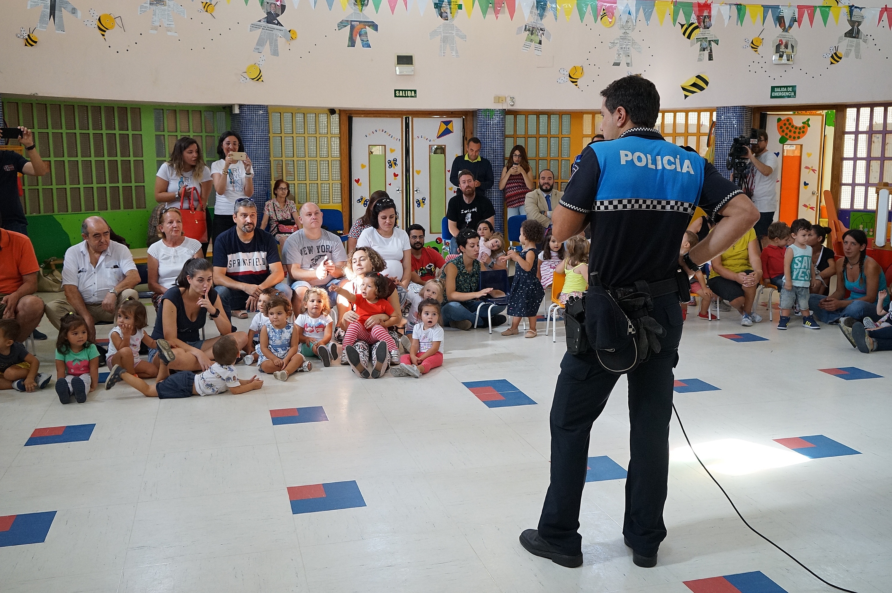 La concejala de Educación, Victoria Soto, el concejal de Seguridad, Luis Vélez, y la jJefa de la Policía Municipal, Julia González, presentaron el proyecto en la Escuela Municipal Infantil "El Principito", en el barrio de La Victoria.