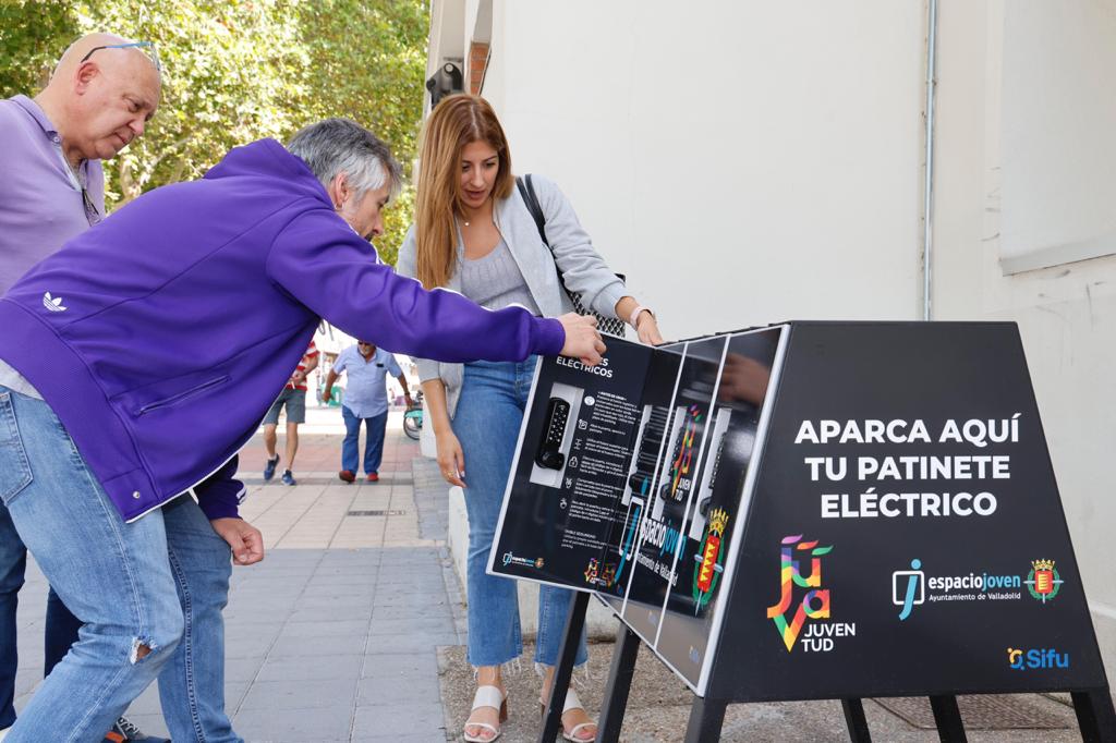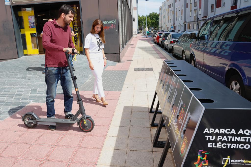 Por ello, la Concejalía de Juventud del Ayuntamiento de Valladolid ha instalado en el Espacio Joven Norte y en el Espacio Joven Sur sendos aparcamientos para patinetes eléctricos, que permitirán aparcar ordenadamente los patinetes en un espacio modular y compatible con todos los modelos de patinetes eléctricos del mercado.
