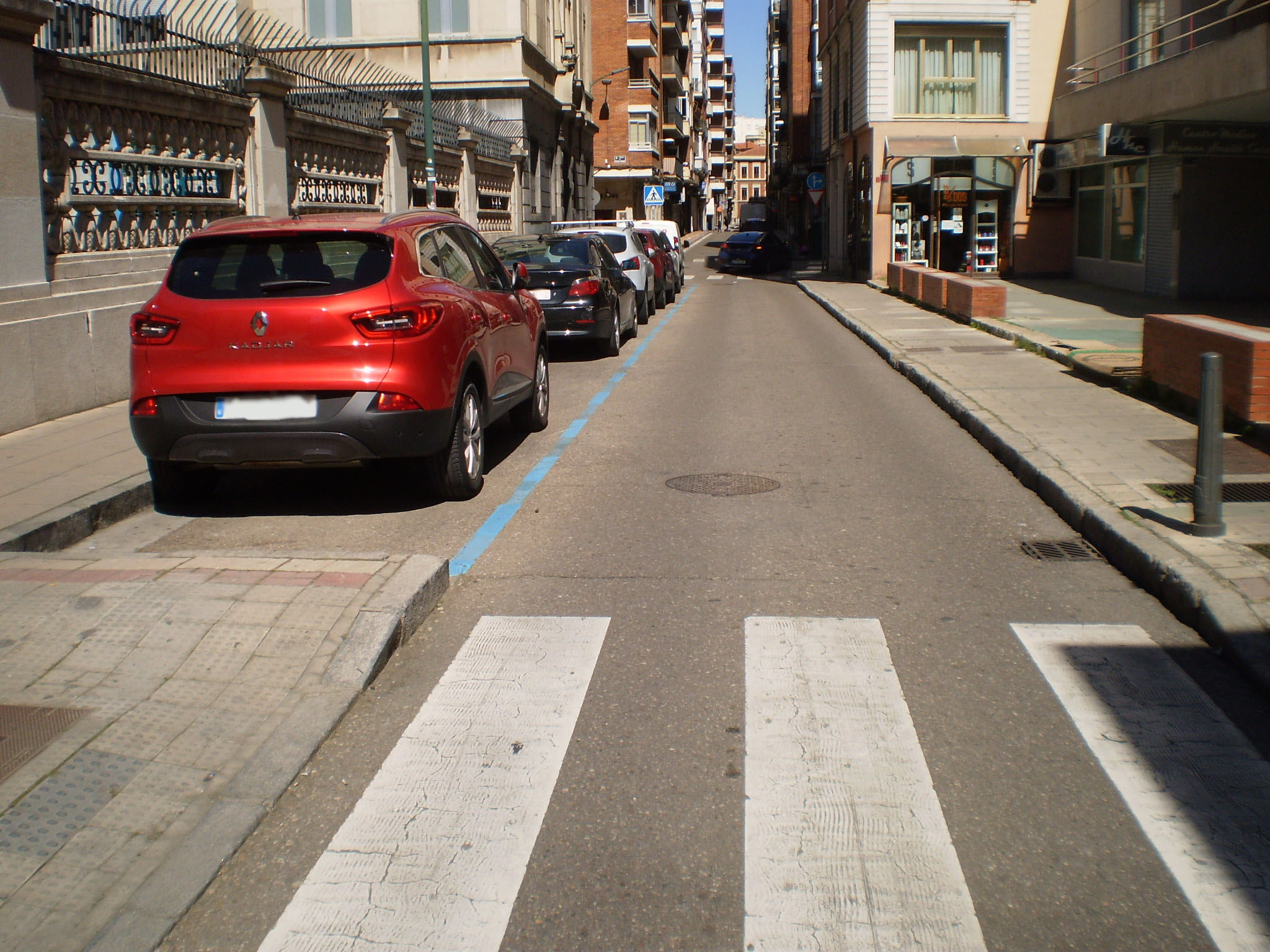 El resto de la escasa sección disponible de esta estrecha vía pública se ha dejado como calzada de carril único de 3,00 m., suprimiéndose las plazas de aparcamiento en línea reguladas por la O.R.A. que existían. Asimismo, en ambos extremos se han reordenado y mejorado tanto los pasos de peatones como los radios de giro.