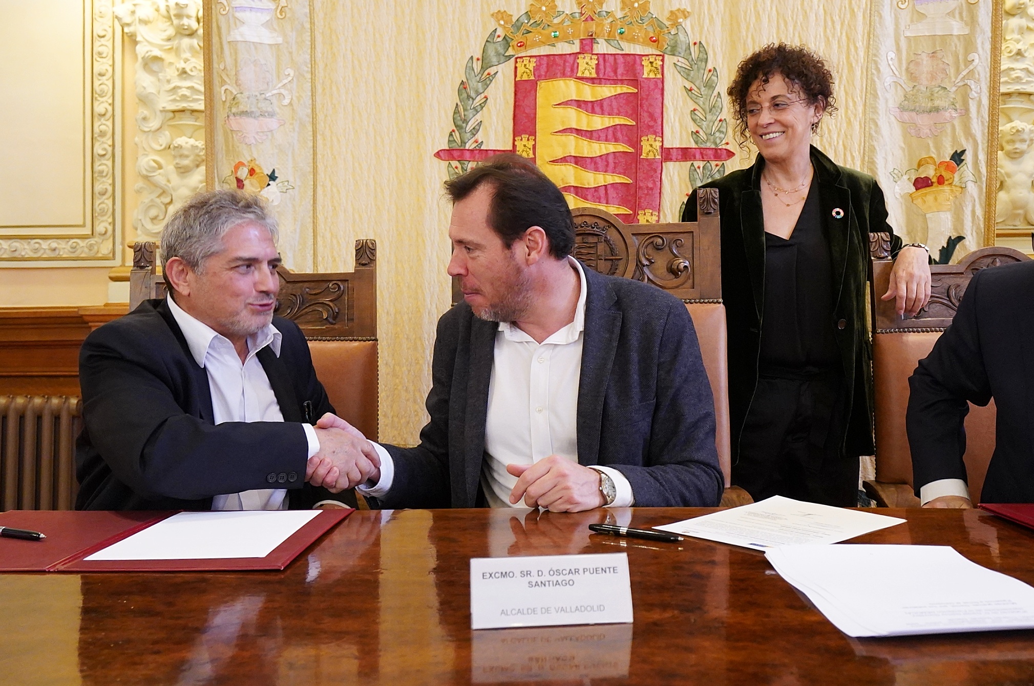 El alcalde, Óscar Puente, ha presentado el programa de cooperación técnica y capacitación internacional de alto rendimiento "Alcalde Tomás Rodríguez Bolaños", que se inicia con la firma de un convenio de colaboración entre el Ayuntamiento de Valladolid y la Fundación para el Desarrollo Local y el Fortalecimiento Municipal e Institucional de Centroamérica y el Caribe (Fundación DEMUCA). En el acto de presentación han estado la concejala de Servicios Sociales y Mediación Comunitaria, Rafaela Romero, y Daniel García González, representante en España de la Fundación.