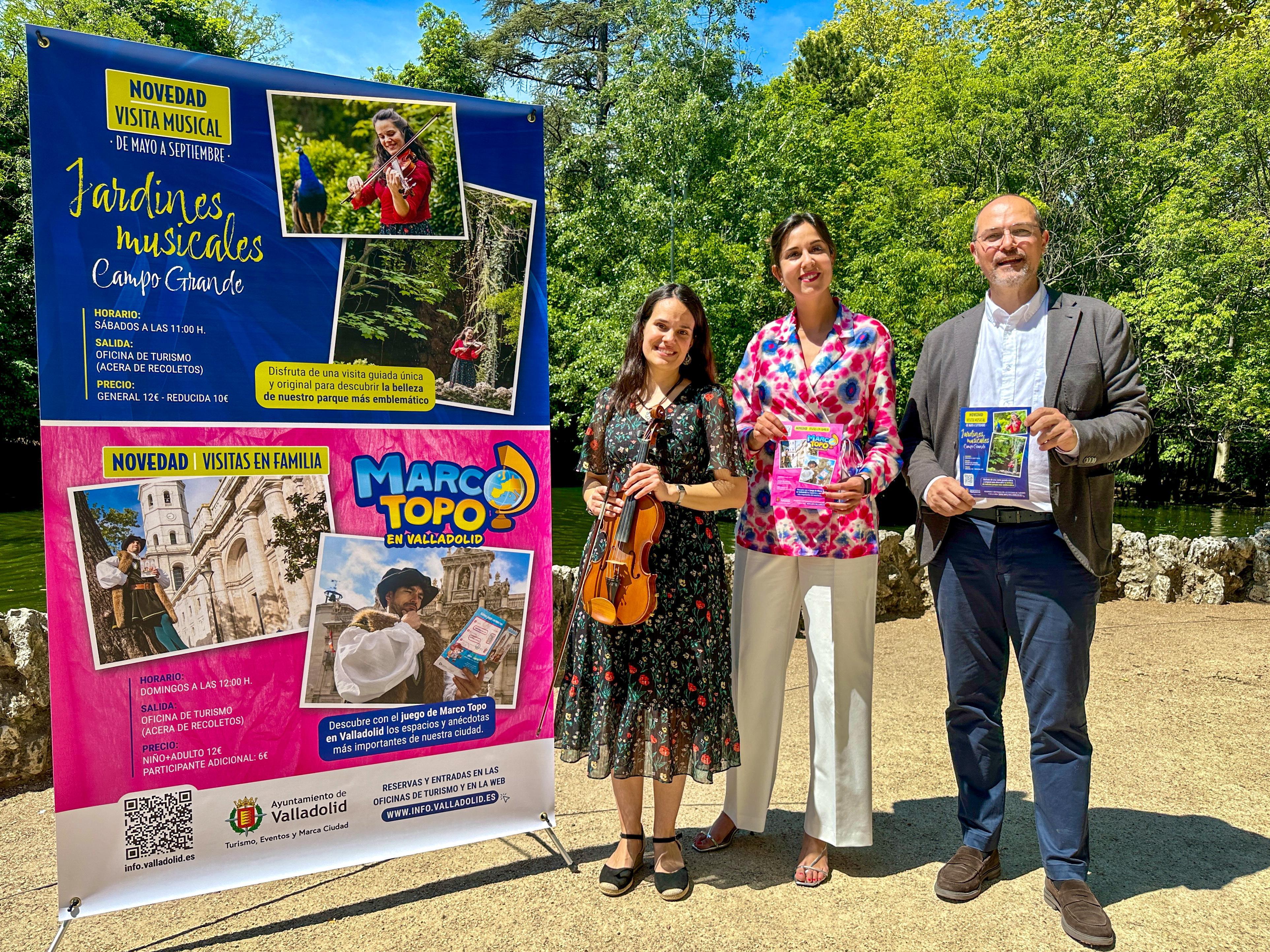 Estas nuevas visitas turísticas ya se pueden reservar desde hoy, viernes 10 de mayo, tanto en las oficinas de Turismo como a través de la página web info.valladolid.es. Su precio será de 12 euros (10 euros en tarifa reducida). en el caso de los ‘Jardines Musicales’. y tarifa familiar de 12 euros (niño y adulto), con la opción de 6 euros por persona añadida, en la visita de ‘Marco Topo’.