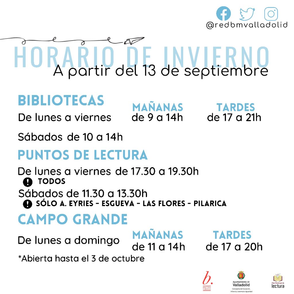 A partir del 13 de septiembre, las Bibliotecas y Puntos de Lectura del Ayuntamiento de Valladolid recuperan su horario habitual: