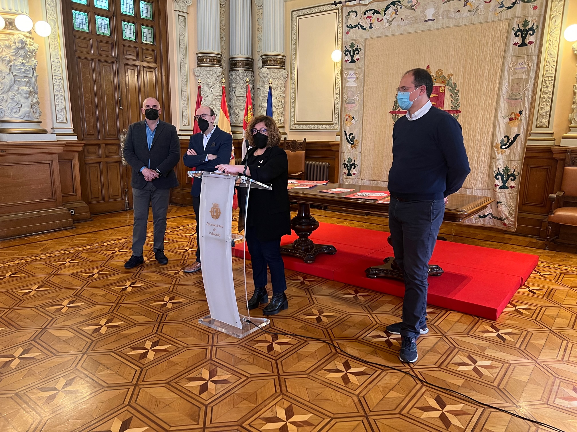 La concejala de Innovación, Desarrollo Económico, Empleo y Comercio, Charo Chávez; el vicepresidente de la Cámara de Valladolid, Javier Labarga Vaca; el presidente de AVADECO, Alejandro García Pellitero; y el presidente de FECOSVA, Jesús Herreras Revuelta, han presentado en la mañana de hoy las distintas campañas que se pondrán en marcha en el mes de marzo con el objetivo de apoyar y revitalizar las ventas en el pequeño comercio en la ciudad.