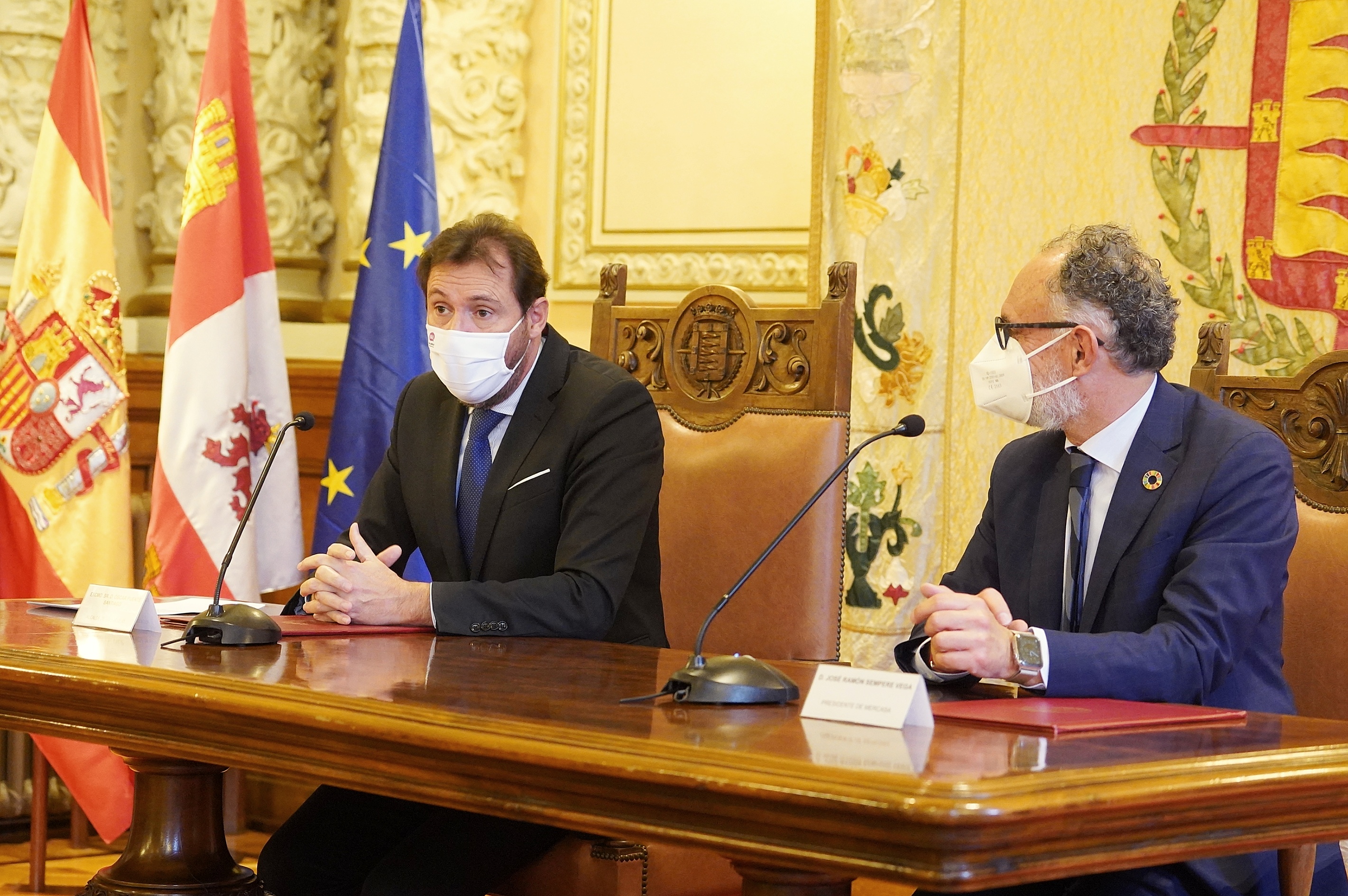 Óscar Puente ha comunicado esta decisión en el Salón de Recepciones del Ayuntamiento junto al presidente de MERCASA, José Ramón Sempere junto a otros responsables de la sociedad estatal. Además, han asistido la presidenta del Consejo de Administración de MERCAOLID y concejala de Innovación, Desarrollo Económico, Empleo y Comercio del Ayuntamiento de Valladolid, Charo Chávez, y la concejala de Medio Ambiente y Desarrollo Sostenible, María Sánchez.