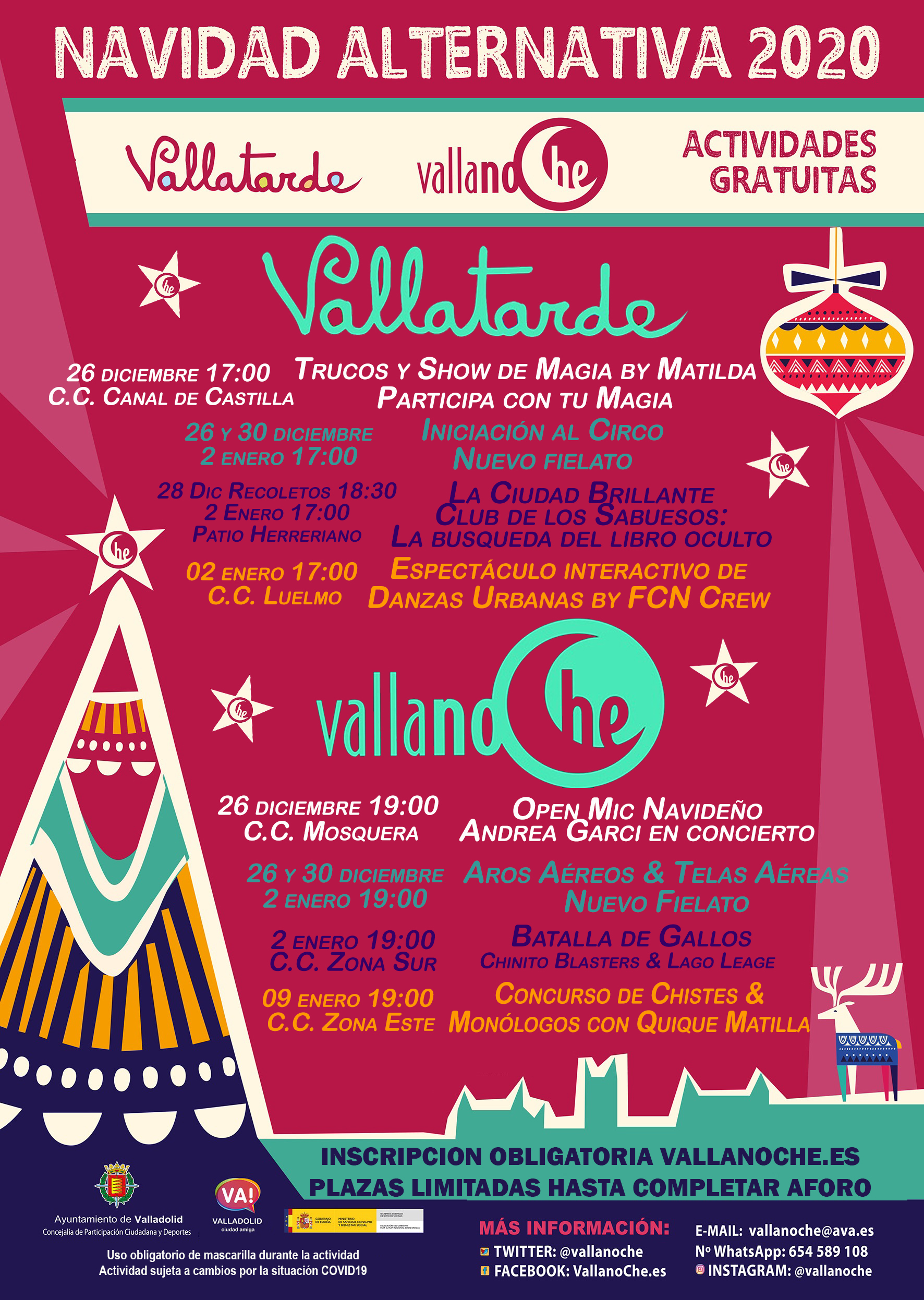 Los programas Vallatarde y Vallanoche también cuentan con actividades gratuitas para las fechas navideñas dirigidas a potenciar el ocio activo y creativo, teniendo en cuenta dos grandes criterios: