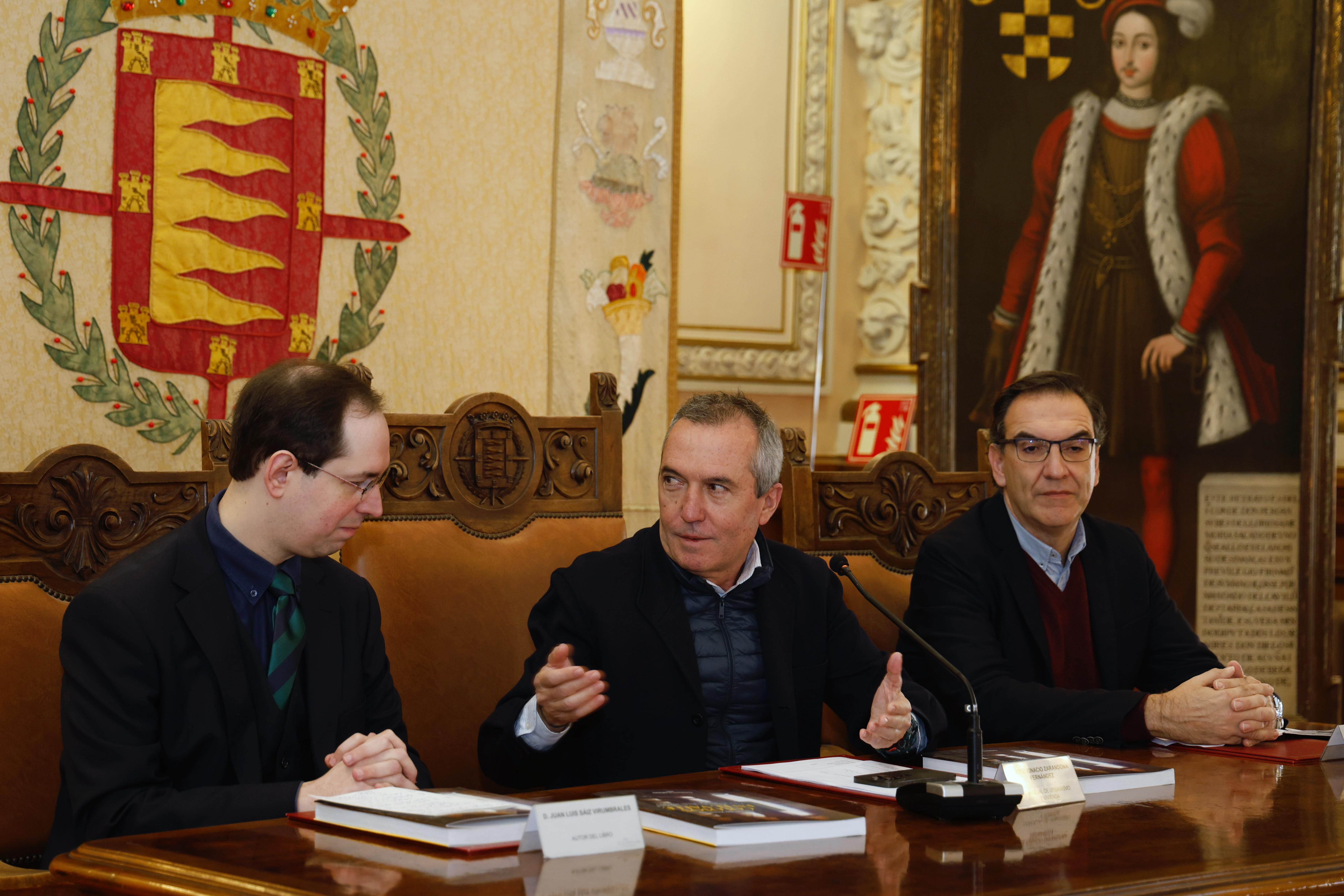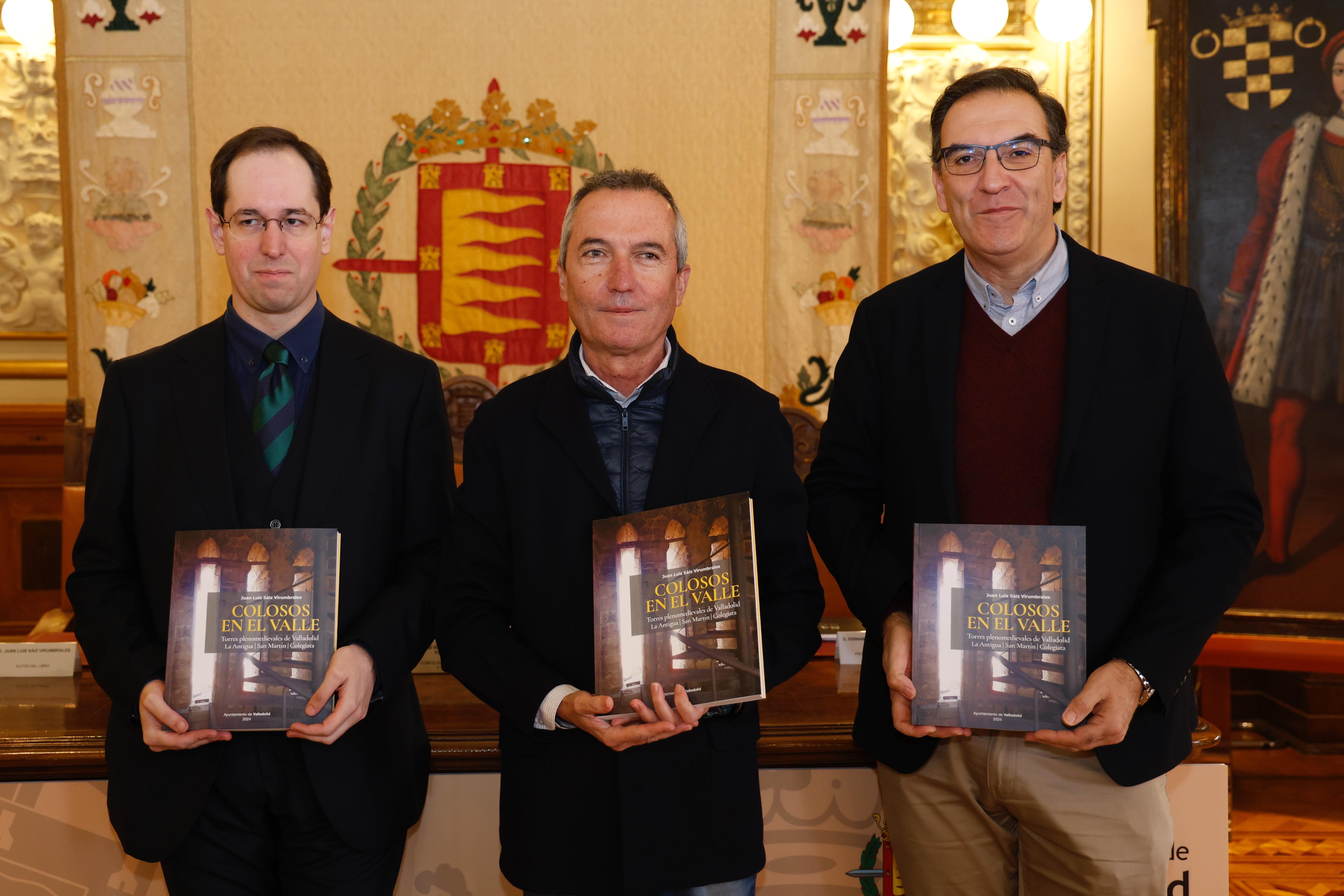 El concejal de Urbanismo y Vivienda, José Ignacio Zarandona, ha presentado esta mañana en el Salón de Recepciones de la Casa Consistorial la publicación ‘Colosos en el valle’, acompañado por su autor, el arquitecto Juan Luis Sáiz Virumbrales, y el prologuista Fernando Gutiérrez Baños.