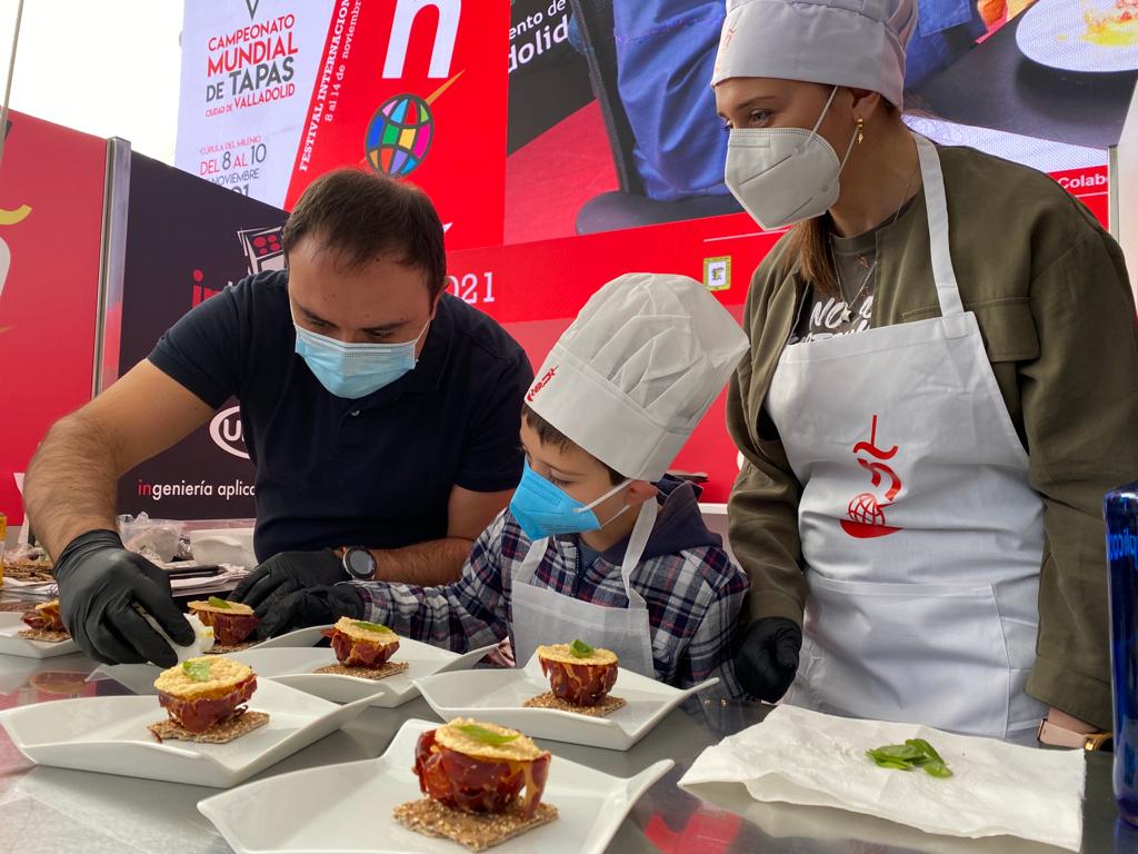 Durante la mañana de hoy sábado, se ha celebrado la final del concurso "Entre tapas anda el juego", una iniciativa de la Sociedad Mixta para la Promoción del Turismo de Valladolid, surgida en las fases más duras del confinamiento de la pandemia, para animar a los vallisoletanos a crear una tapa. Se establecieron dos categorías: individual y familiar. Los finalistas han elaborado hoy sus tapas en las cocinas de la Cúpula del Milenio, ante un jurado presidido por Toño González, de Los Zagales y campeón del Concurso Nacional de 2010. Junto a él han estado Jonatan Armengol, quien dirige el programa "Cocinar a Ciegas" en Radio Intereconomía; Jesús Ramiro de bodegas Ramiro´s, Karime Farcug, influencer gastronómica; y Paco Becerro de Directo al Paladar. En la categoría familiar la ganadora ha sido la familia Vega González, formada por Miguel, Julia y Antonio que se han llevado un premio de 1.000 euros por la tapa "Manzana asada al curry en vasito ibérico". En la categoría individual, el ganador ha sido Rodrigo García Sanz con la tapa "Segunda Oportunidad", con un premio de 500 euros.