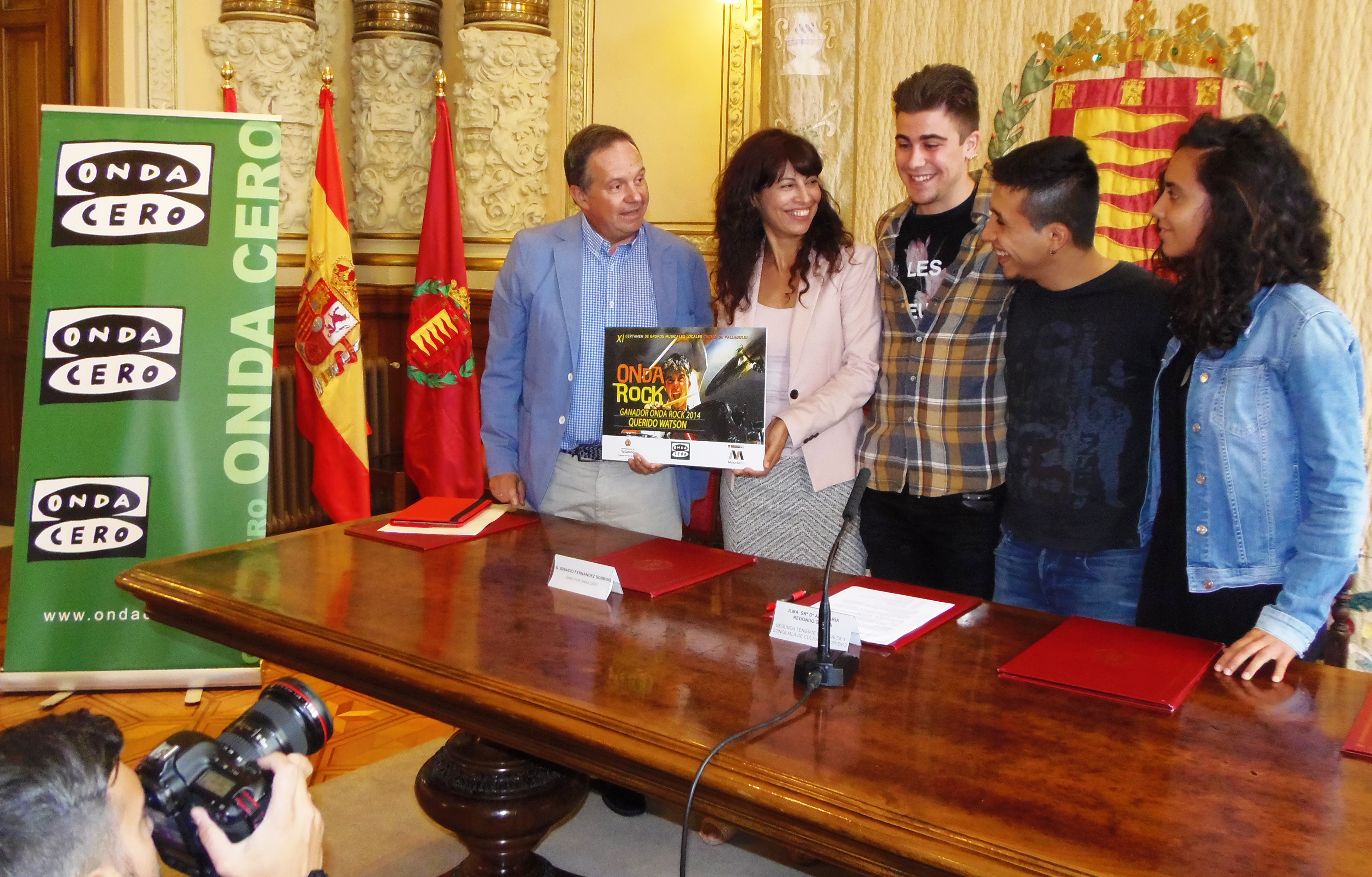 La concejala de Cultura, Ana Redondo, y el director de Onda Cero, Ignacio Fernández, presentaron el certámen junto al grupo Querido Watson