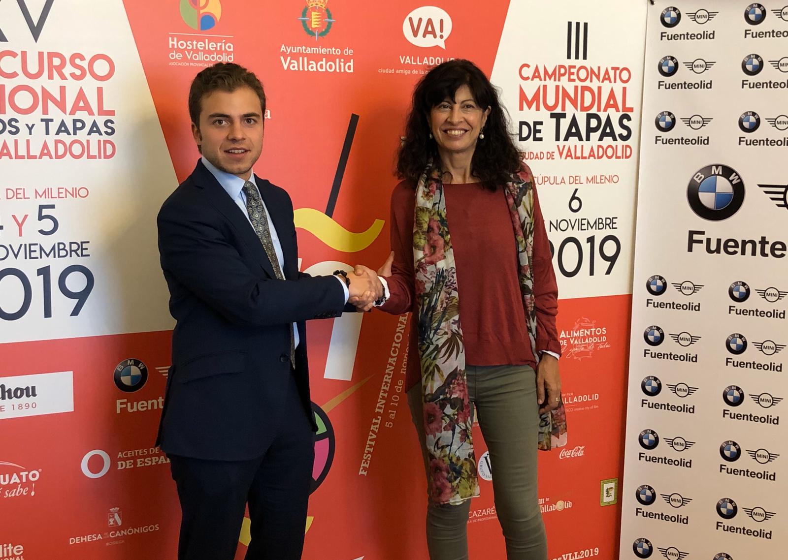 La concejala de Cultura y Turismo, Ana Redondo y el director general de la empresa Fuenteolid, concesionario Oficial BMW-MINI, Alberto Hidalgo, han firmado un contrato de patrocinio para el XV Concurso Nacional de Pinchos y Tapas y el III Campeonato Mundial que se celebrarán el 4, 5 y 6 de noviembre en la Cúpula del Milenio.