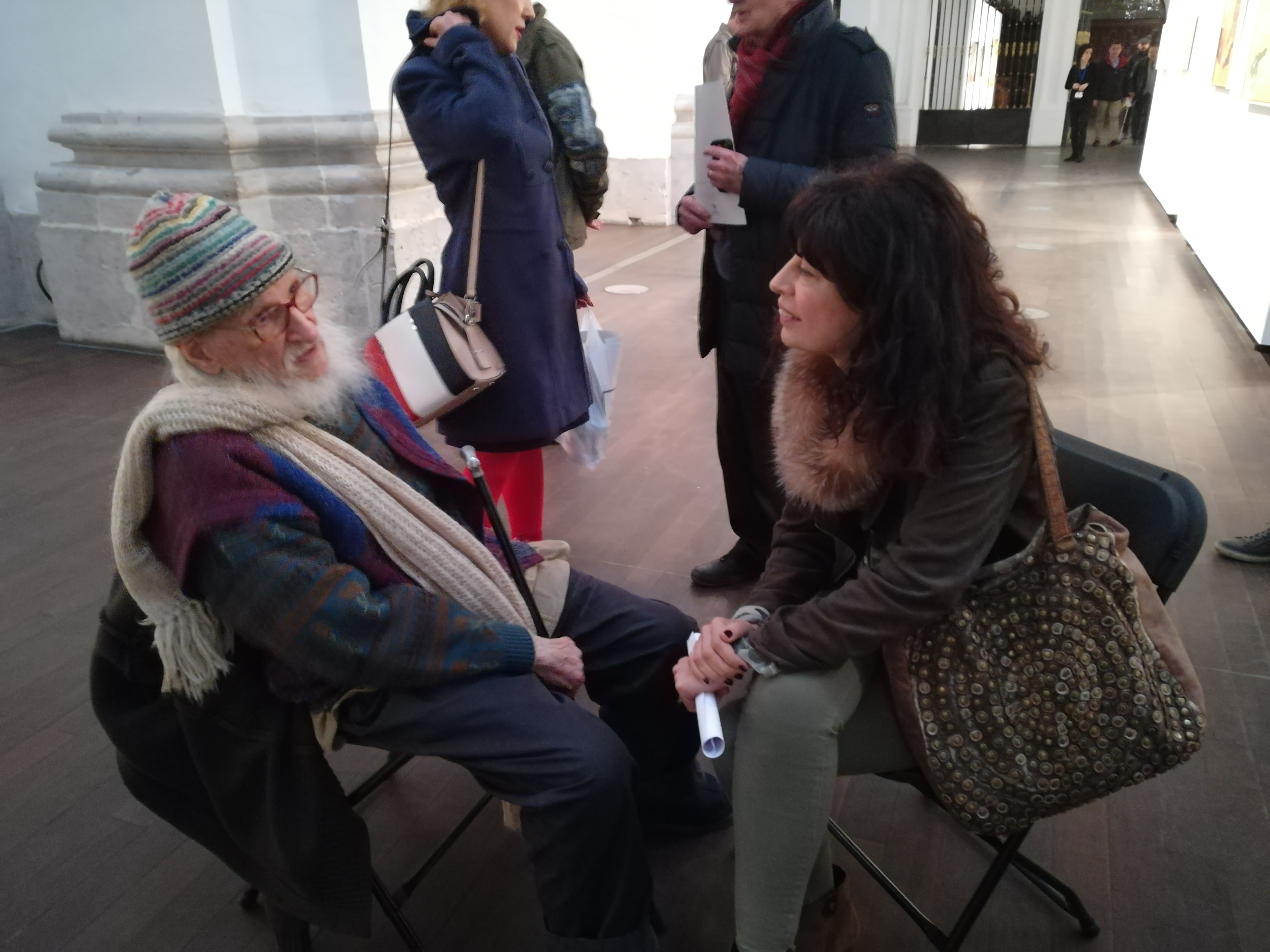 Ahora ha reunido algunos de esos paisajes en la exposición que, organizada por la Fundación Municipal de Cultura, muestra en la sala de la Iglesia de la Francesas pinturas realizadas desde 2017 que dialogan con algunas anteriores seleccionadas por el artista para dar una visión global de un obra personal e inimitable. Son óleos sobre lienzo de formatos medianos, aunque hay algunos grandes, que muestran las tierras con verdes y dorados y entre los que se encuentra una composición con figura de 1992. Es un profeta, dice el pintor, que con el cuadro quiso rendir homenaje a Berruguete. También están en la sala ‘La terna’, ese grupo de toreros de 1960 vestidos de negro con toques rojos con los que se adentró en el cubismo sintético, y, en saltos en el tiempo, los desnudos de una pareja entre hojas y flores de 2017, el de una mujer rodeada de libros del año anterior, un óleo sobre tabla de 1980 y formato pequeño de finales de los ochenta y otro de 1983 que nunca ha sido expuesto.