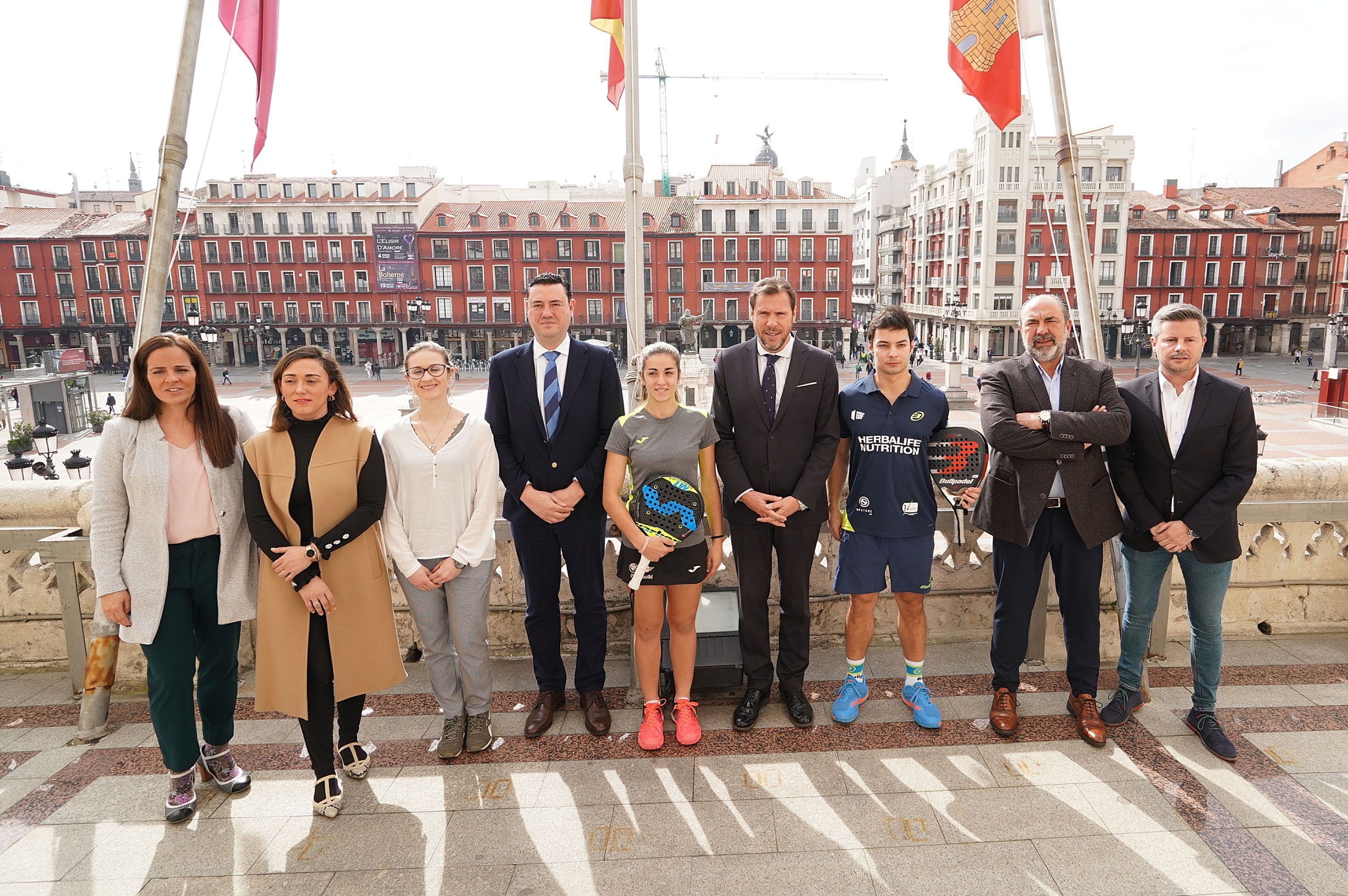 La cita con los mejores deportistas de pádel del mundo se celebrará a finales de junio en tres escenarios, incluida la Plaza Mayor de Valladolid. El alcalde, Óscar Puente, ha presentado en el Ayuntamiento Valladolid Máster 2020, prueba que forma parte del circuito del World Pádel Tour, junto a Francisco Javier González, diputado de Deportes de la Diputación Provincial; María Perrino, directora general de Deportes de la Junta de Castilla y León; Luis Torres, director de Expansión nacional de World Padel Tour y Juan Méndez, director de Comunicación de Madison Sports Marketing. Además, han asistido Javi Martínez y Bea Caldera, jugadores vallisoletanos de World Padel Tour.