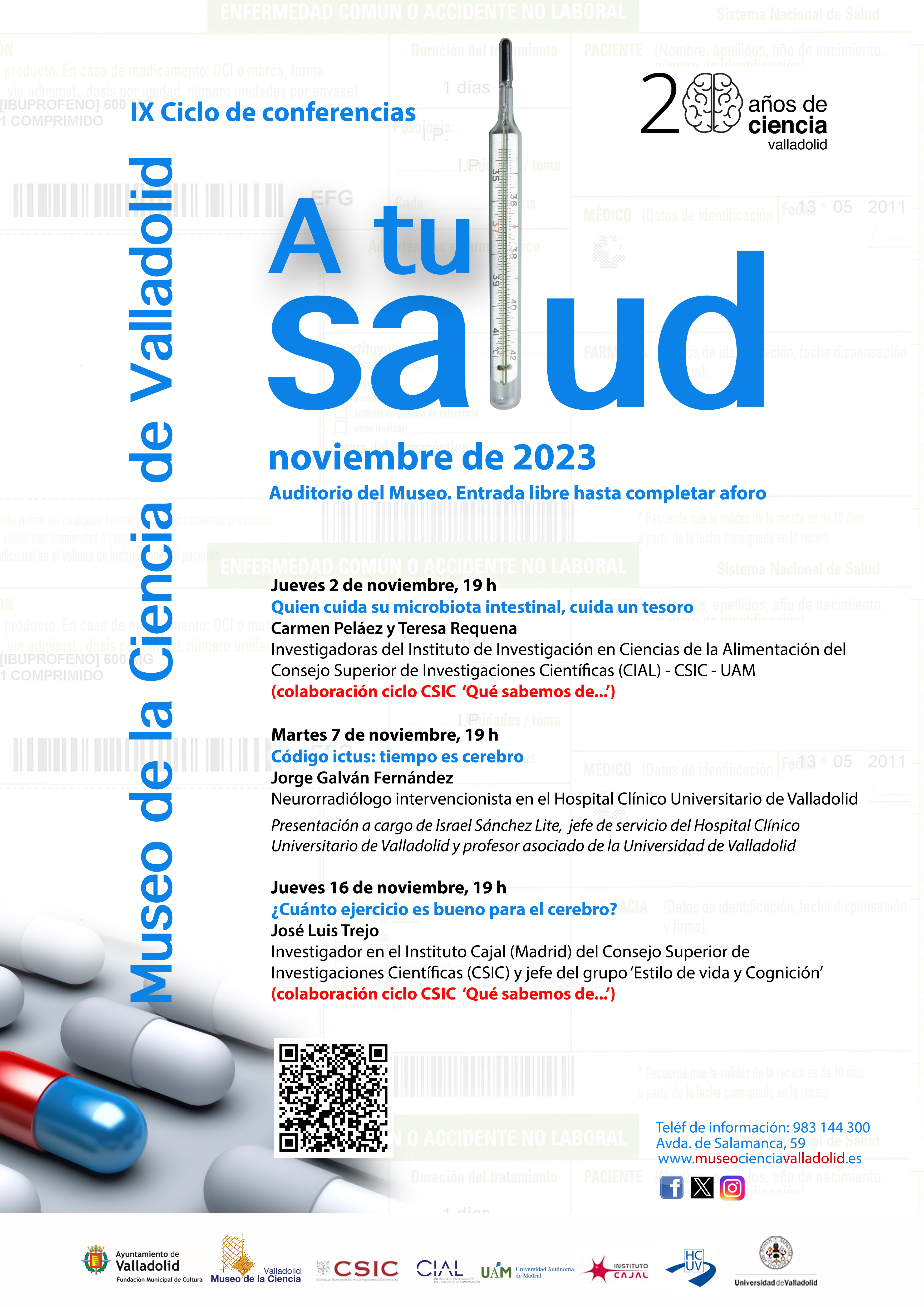 El Museo de la Ciencia de Valladolid-Fundación Municipal de Cultura pondrá en marcha a partir del próximo jueves, 2 de noviembre, la novena edición del ciclo de charlas ‘A tu salud’. Una iniciativa en la que, como cada año, los mejores expertos acercarán al público diferentes aspectos relacionados con el ámbito sociosanitario. Las conferencias tendrán lugar en el Auditorio del Museo de la Ciencia.