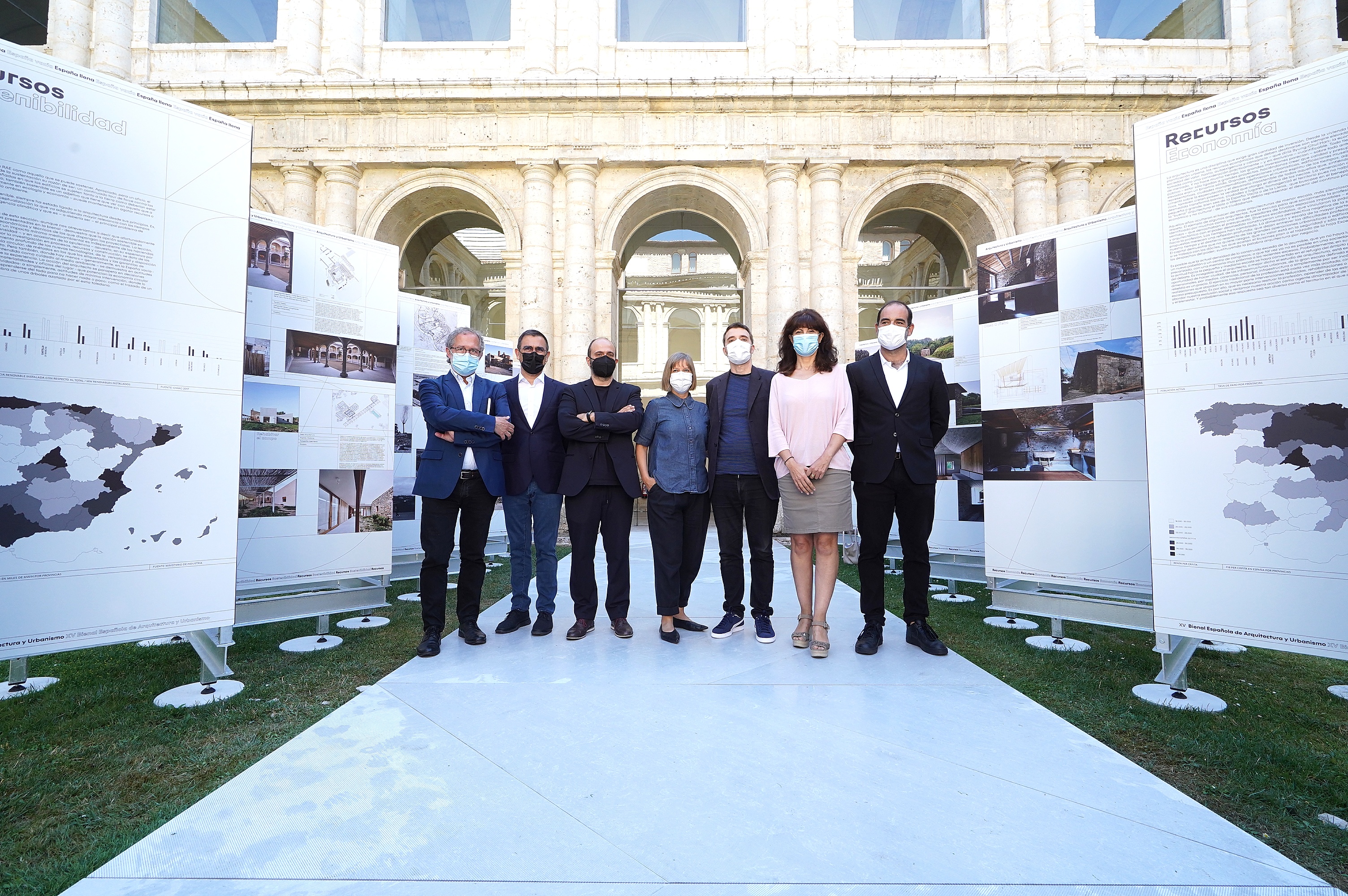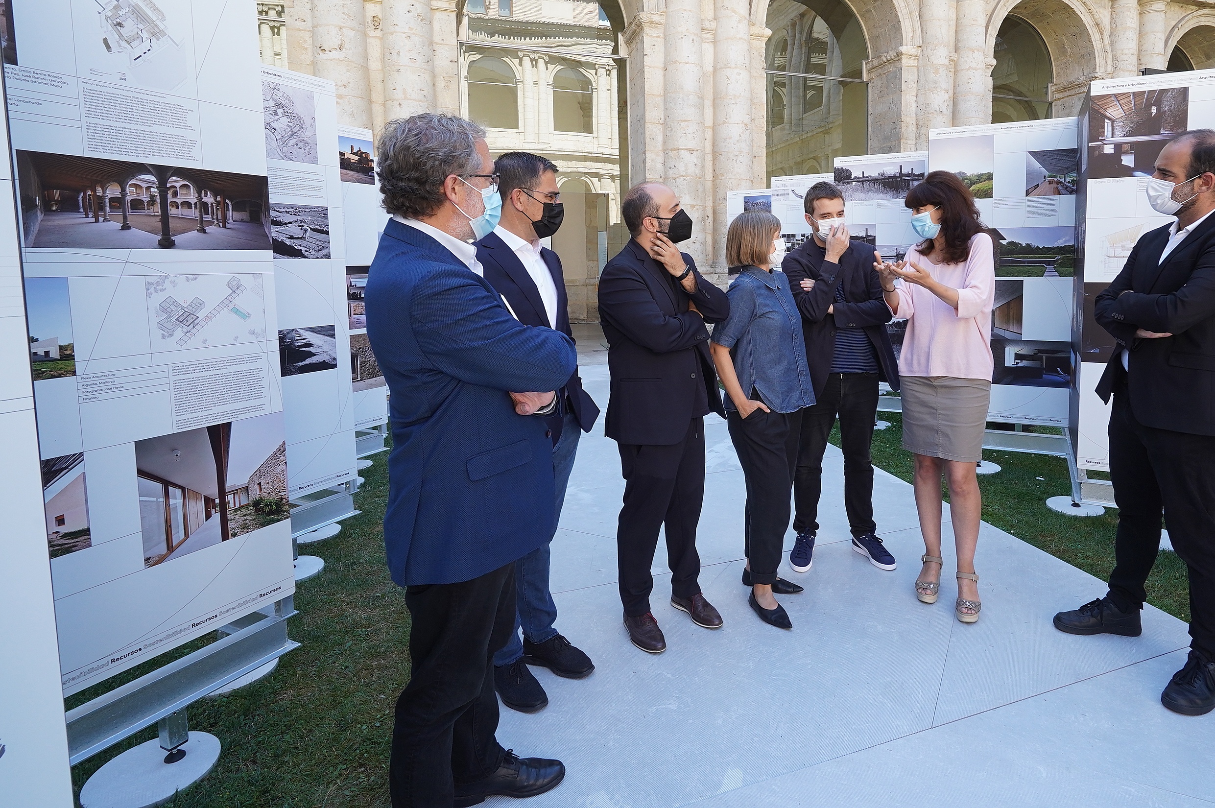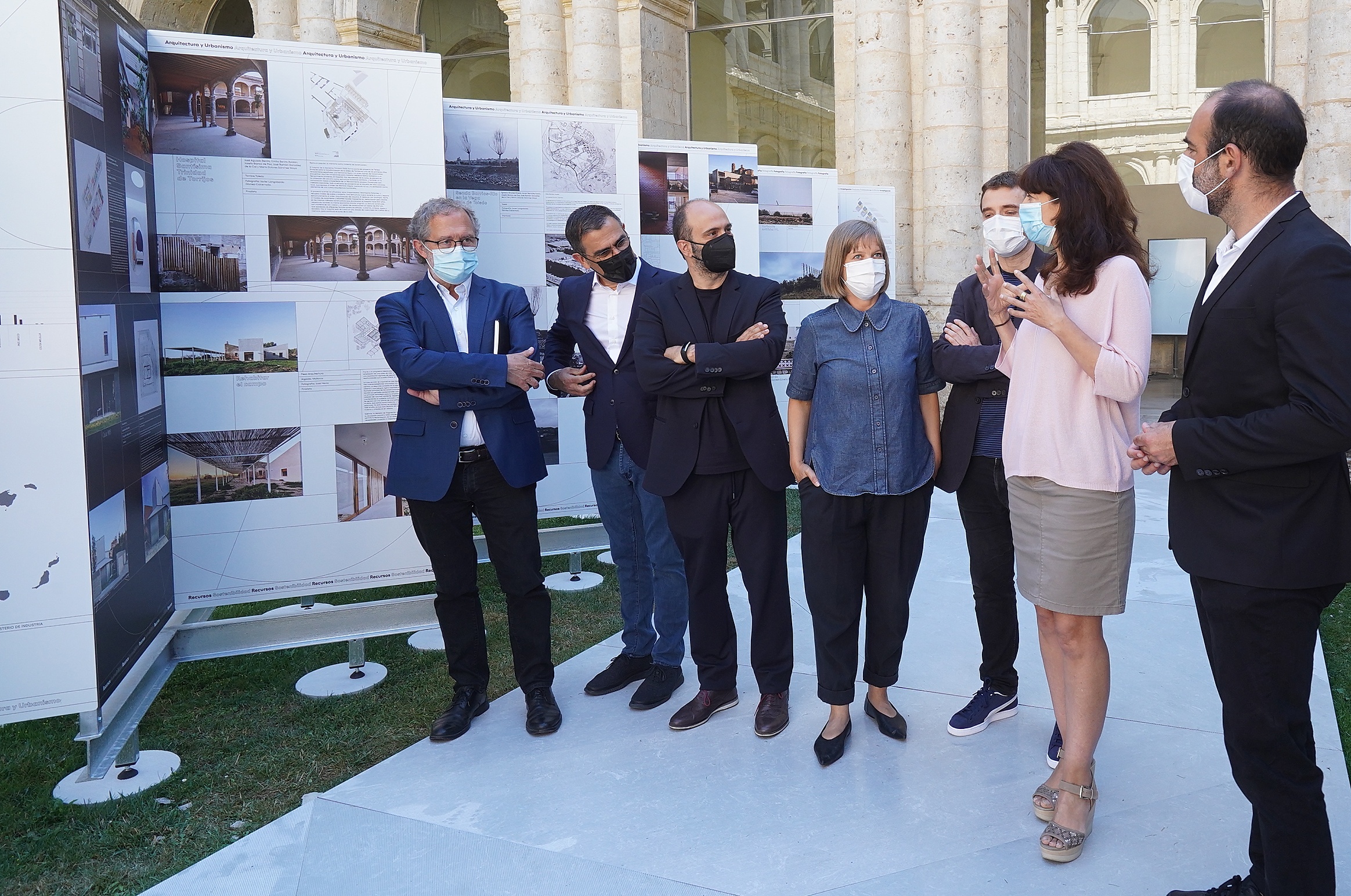 En la presentación, los concejales han estado acompañados por los tres comisarios de la muestra: los arquitectos Óscar Miguel Ares, Anna Bach y Eugeni Bach; el CEO de COMPAC, Paco Sanchís; y el director del Museo Patio Herreriano, Javier Hontoria.