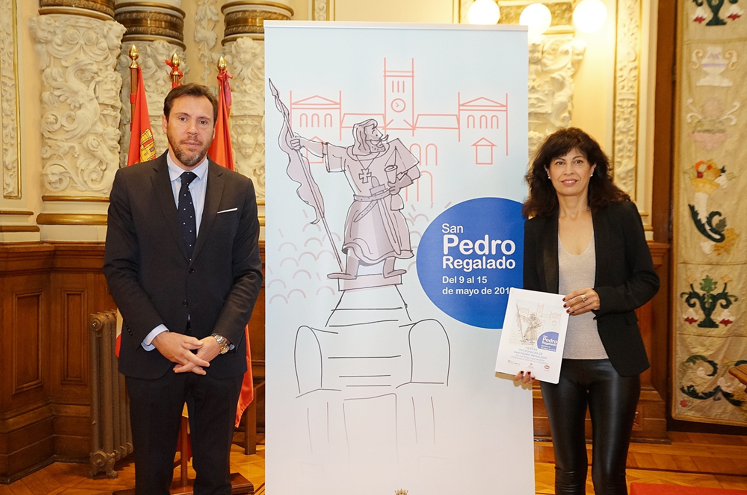 El alcalde de Valladolid, Óscar Puente, y la concejala de Cultura y Turismo, Ana Redondo, presentaron hoy, en el Salón de Recepciones del Ayuntamiento, la programación de actividades de las fiestas patronales de San Pedro Regalado 2019 que se desarrollará del 9 al 15 de mayo, con actividades para todos los gustos y edades siendo el folclore, la artesanía, la gastronomía o la música principales apuestas de la fiesta.