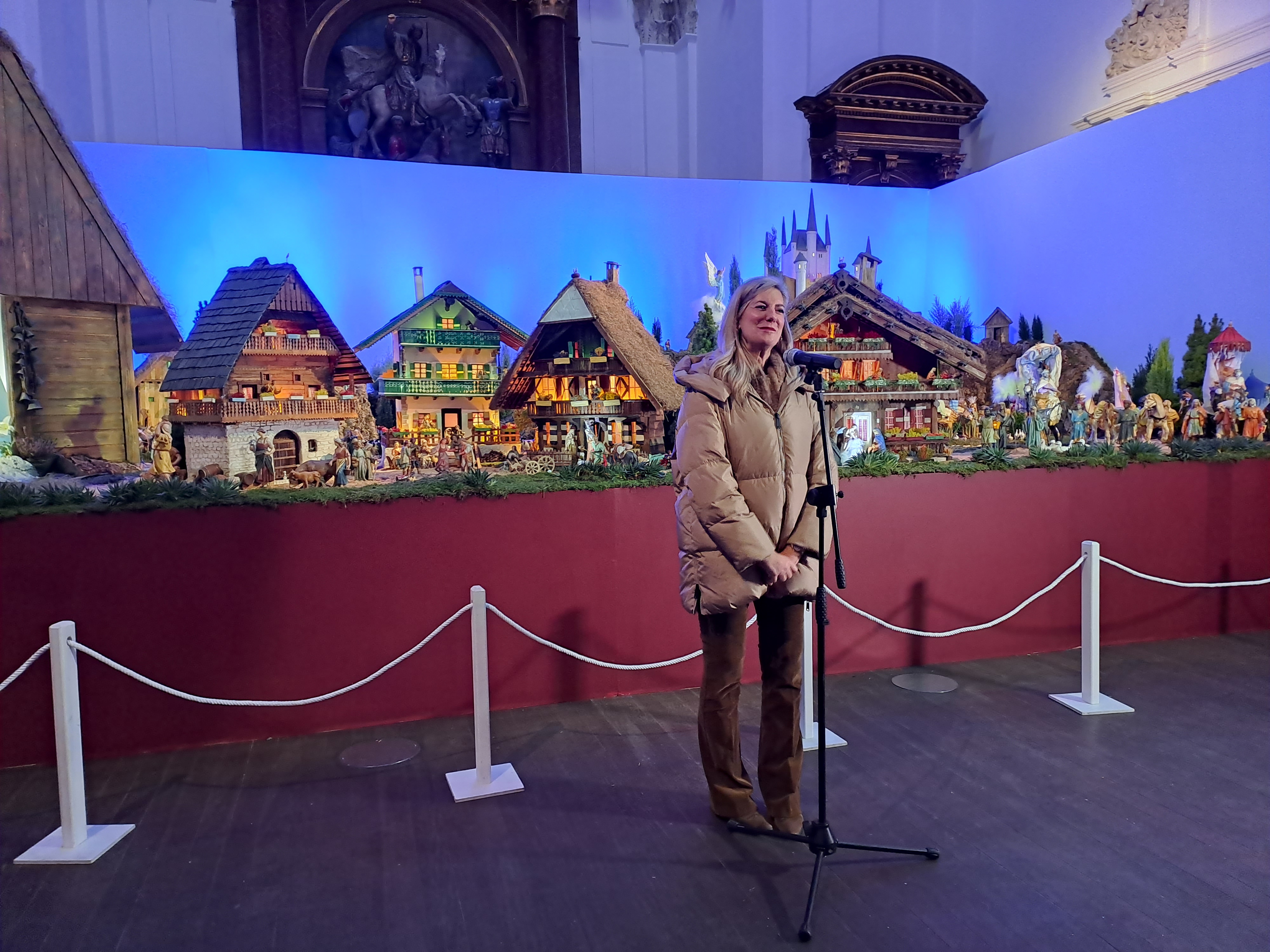 La concejala de Educación y Cultura, Irene Carvajal, acompañada por el belenista Alejandro Angulo, ha inaugurado esta mañana el belén monumental de la Sala Municipal de Exposiciones de Las Francesas-Fundación Municipal de Cultura, un montaje de cerca de 40 m2 inspirado en la aldea austriaca Christkindl (Cristo Niño).