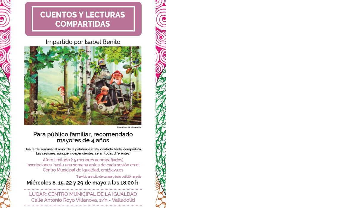 Miércoles 8, 15, 22 y 29 de mayo a las 18:00 h