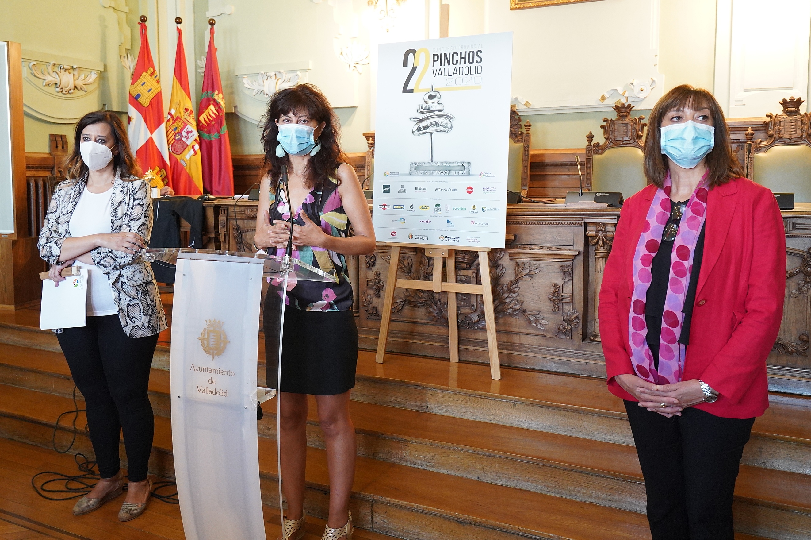 La concejala de Cultura y Turismo, Ana Redondo, junto con la diputada de Turismo de la Diputación de Valladolid, Nuria Duque, y la presidenta de la Asociación Provincial de Empresarios de Hostelería, María José Fernández han presentado la XXII edición del Concurso Provincial de Pinchos de Valladolid, que tendrá lugar del 21 al 27 de septiembre.