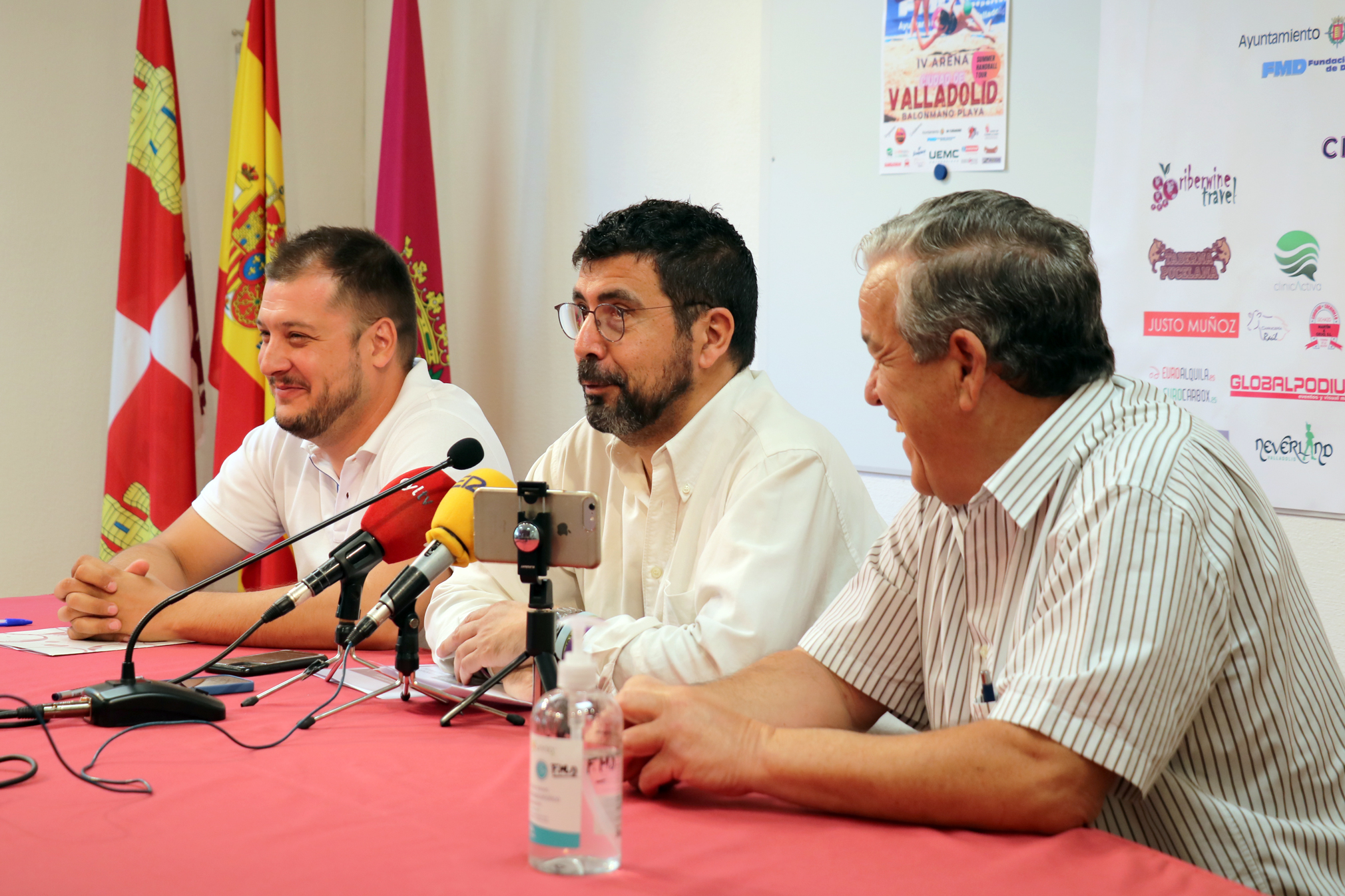 El concejal de Participación Ciudadana y Deportes, Alberto Bustos, ha presentado el IV Torneo de balonmano playa Arena Handball Ciudad de Valladolid que se celebrará del 8 al 10 de julio en la playa de Las Moreras. Acompañado a Bustos han estado el presidente de la Federación de Balonmano de Castilla y León, Agustín Alonso y el organizador de esta prueba David Piquero.