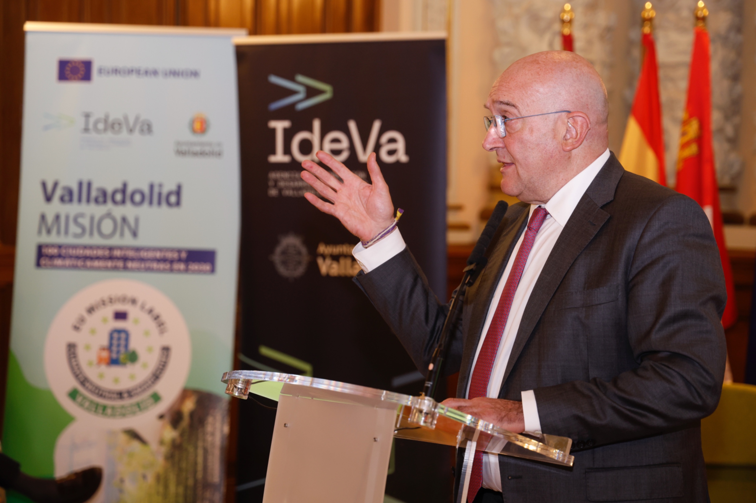 La jornada ‘Embajadores Misión Valladolid: Un compromiso de presente y de futuro’ ha celebrado la primera de sus sesiones dedicadas a la Misión Climática, en la que el alcalde, Jesús Julio Carnero, ha querido agradecer el compromiso de todos los que están sumando su esfuerzo para reducir la huella de carbono de la ciudad. "La Misión Climática de Valladolid es una misión de ciudad, en la que desde el principio hemos buscado la involucración de todos vosotros para alcanzar nuestra meta común, dado que sin vuestro apoyo no será posible alcanzar el ambicioso objetivo de reducir las emisiones de carbono, que permita que nuestra ciudad sea más saludable y con mejor calidad de vida para todos nuestros ciudadanos, pero también más competitiva y a la vanguardia de las ciudades europeas. Es un logro y un orgullo como ciudad que esta ambiciosa Misión cuente ya con más de 150 entidades procedentes del tejido productivo, asociativo, académico e institucional vallisoletano", ha subrayado el alcalde en sus palabras de agradecimiento.