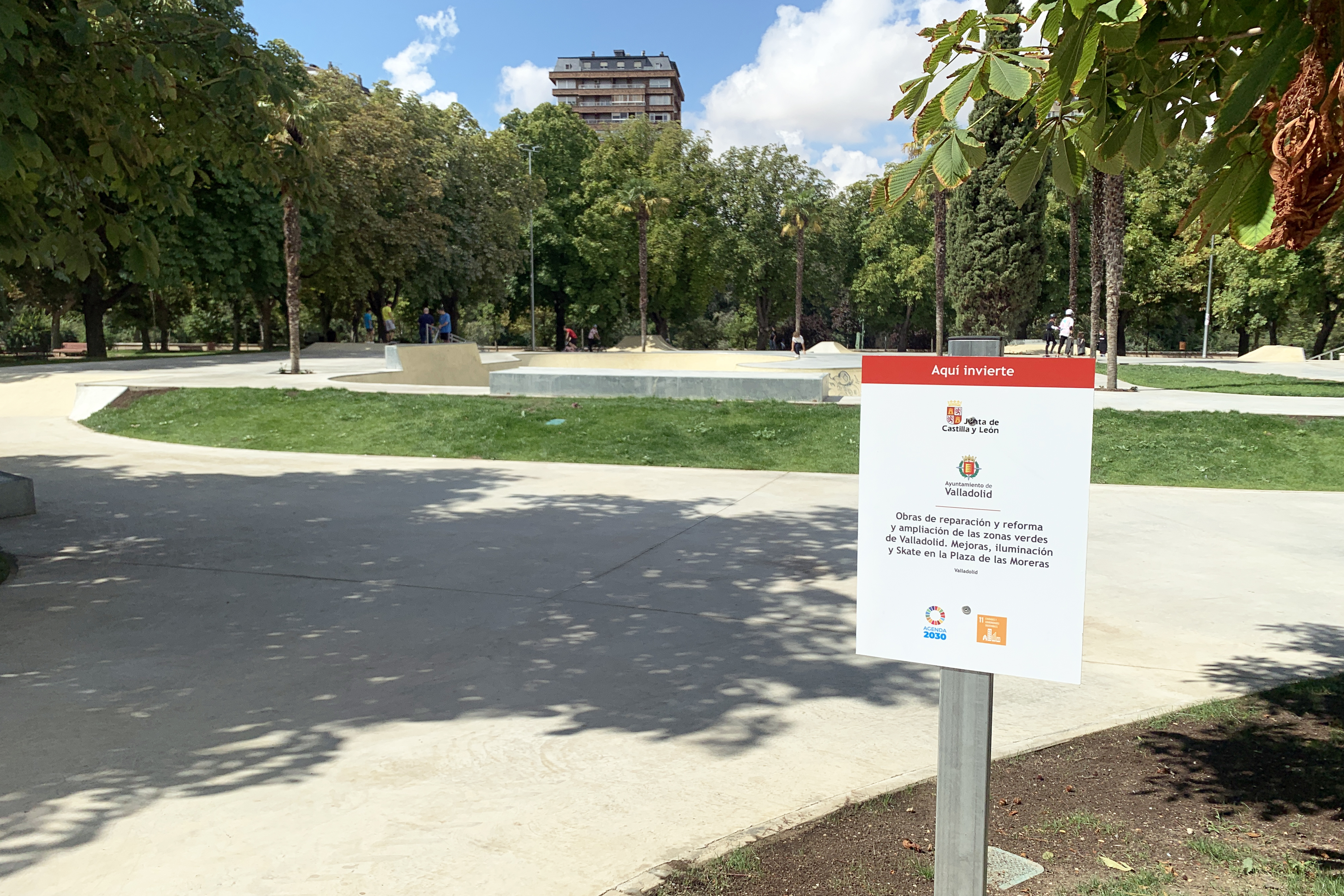 Las obras de "Mejoras, iluminación y skate en la plaza de las Moreras" se han desarrollado en la ribera izquierda del Pisuerga y se ha centrado en la ejecución de una zona de patinaje fundamentalmente con monopatín o skate en la que se trata de realizar diversos trucos gran parte de ellos elevando la tabla del suelo haciendo piruetas con ella en el aire. De esta forma, las acrobacias con monopatín, patines o incluso bicicletas se convierten en un atractivo para los paseantes.